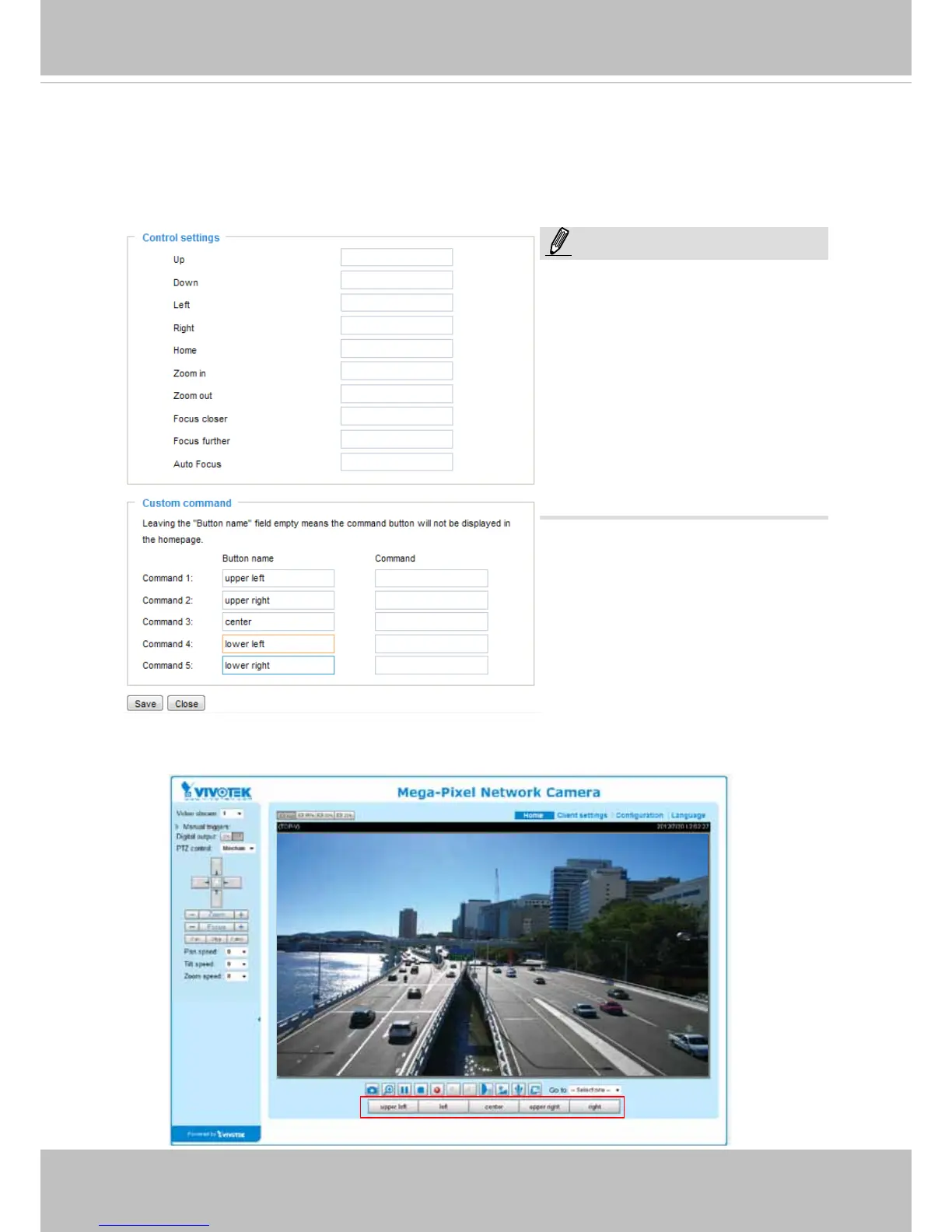 page to set the commands in the Control Settings session. Please refer to your PTZ scanner's