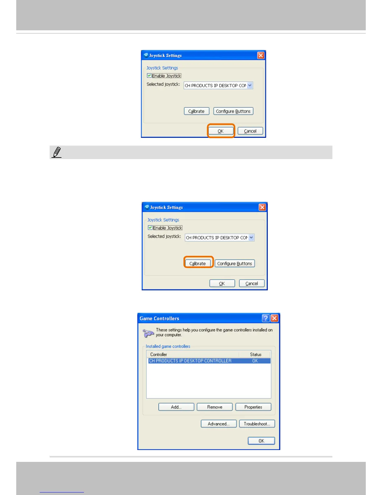 • If your joystick is not working properly, it may need to be calibrated. Click the Calibrate button to