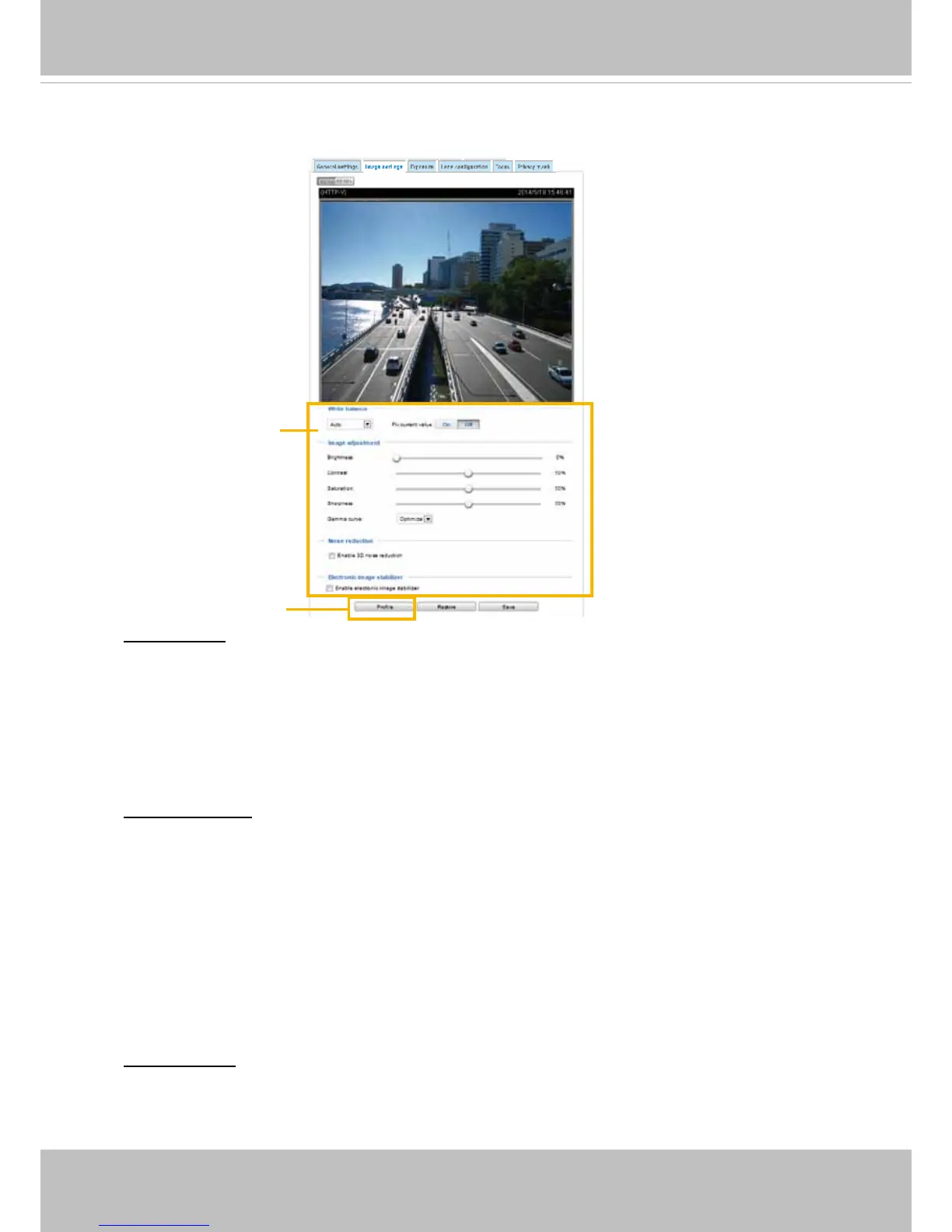 On this page, you can tune the White balance, Image adjustment and WDR enhanced .