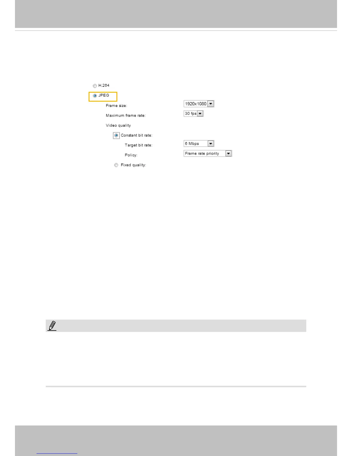 bandwidth consumed for transmitting motion jpegs. The conguration method is identical to that