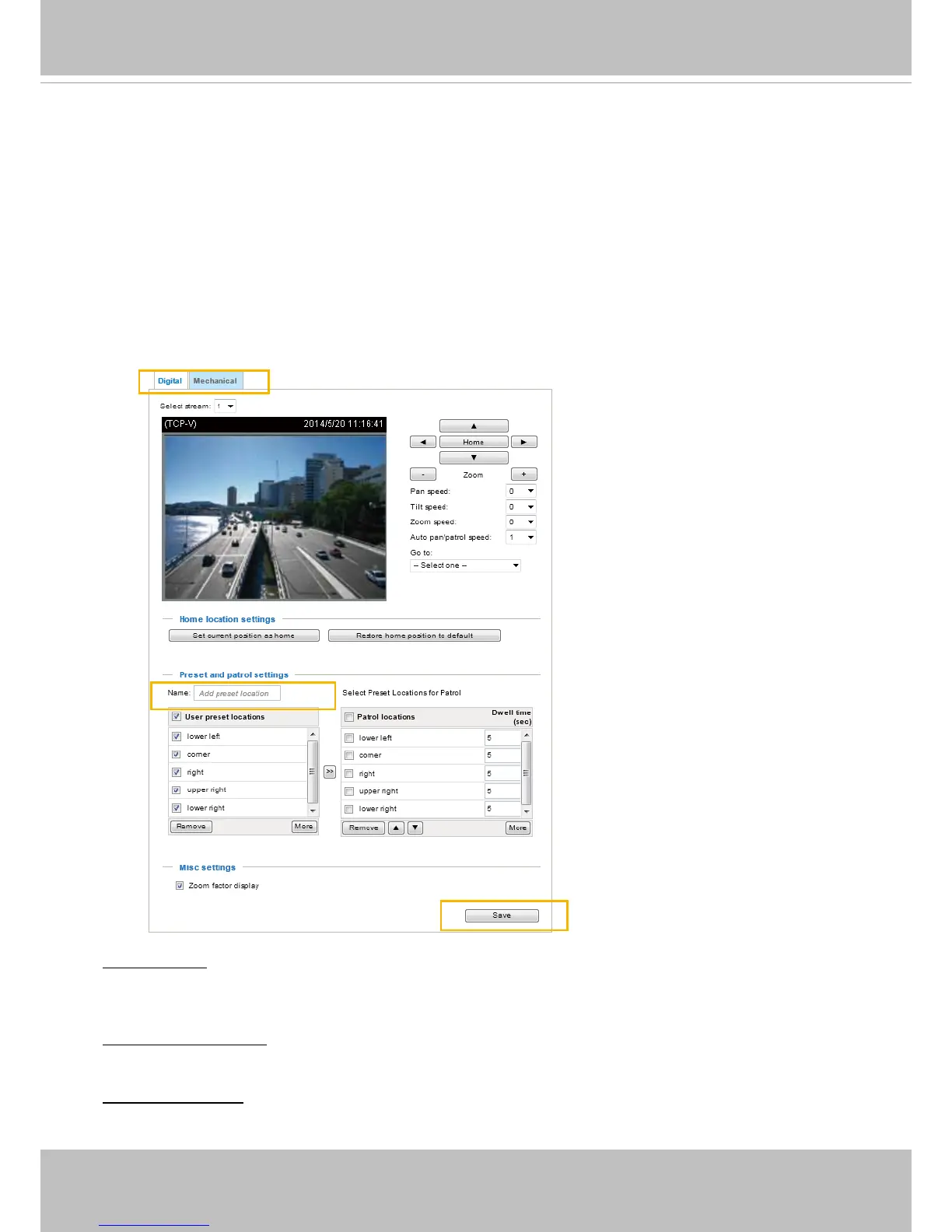 1. Digital: Control the e-PTZ operation. Within a eld of view, it allows users to quickly move the