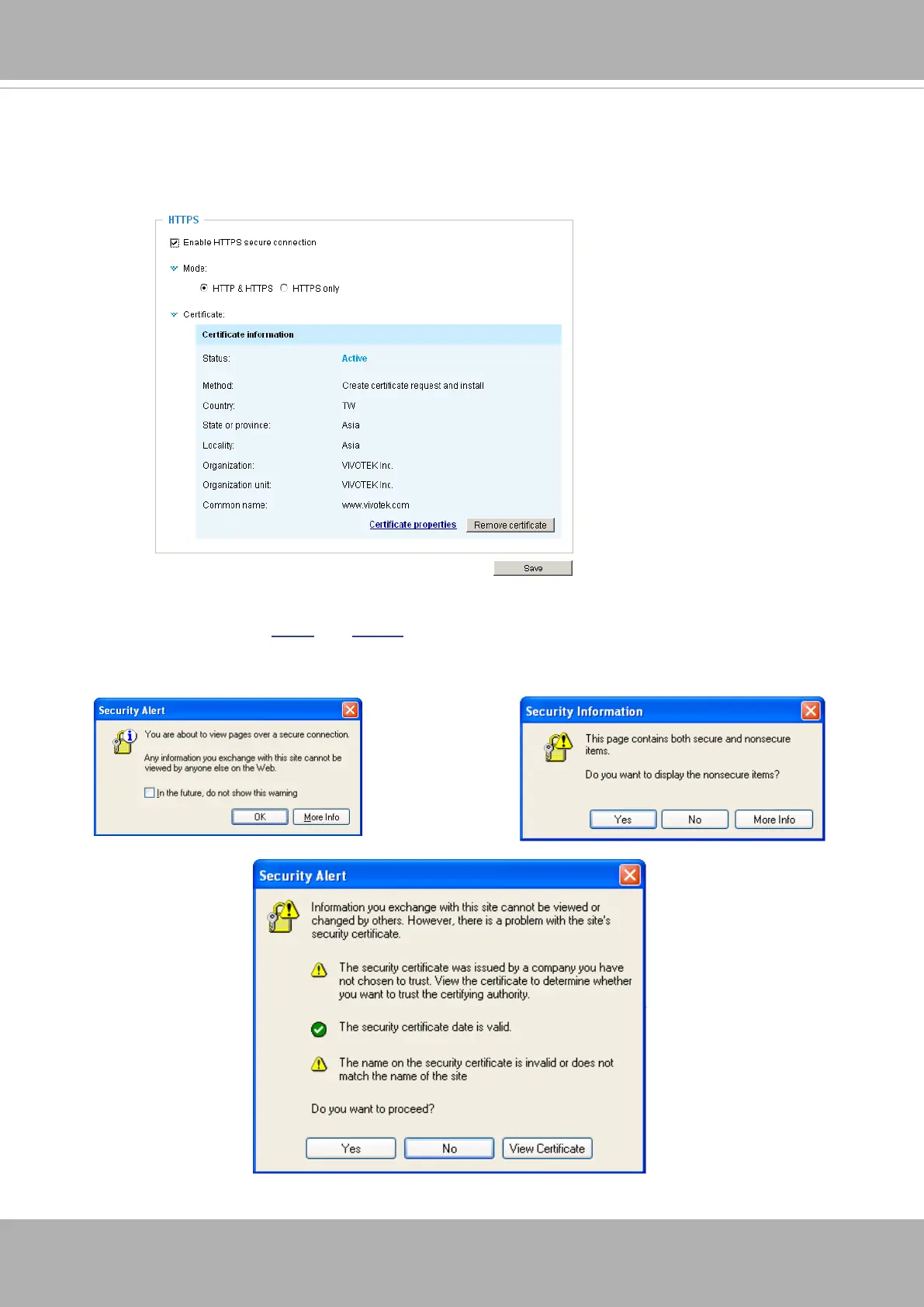 Some Security Alert dialogs will pop up. Click OK or Yes to enable HTTPS.