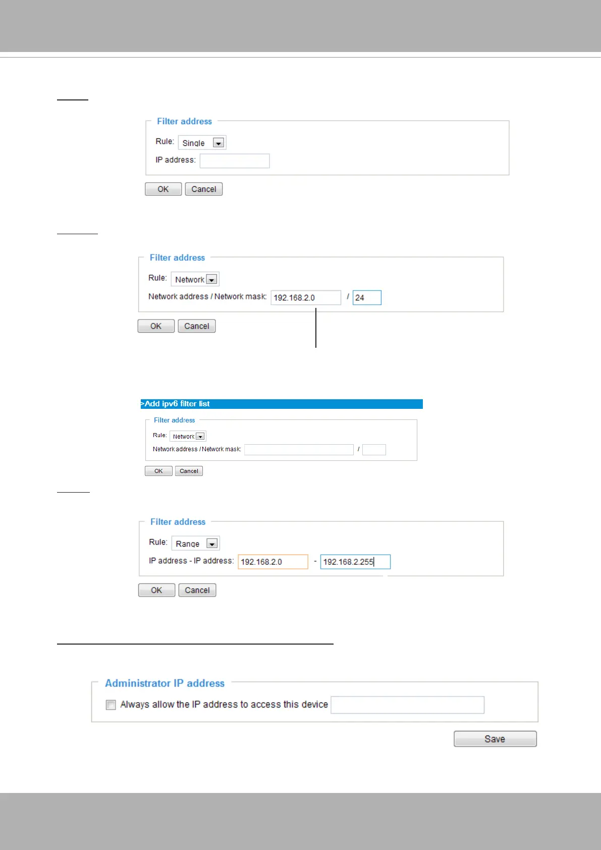 Administrator’s IP address in this eld to make sure the Administrator can always connect to the
