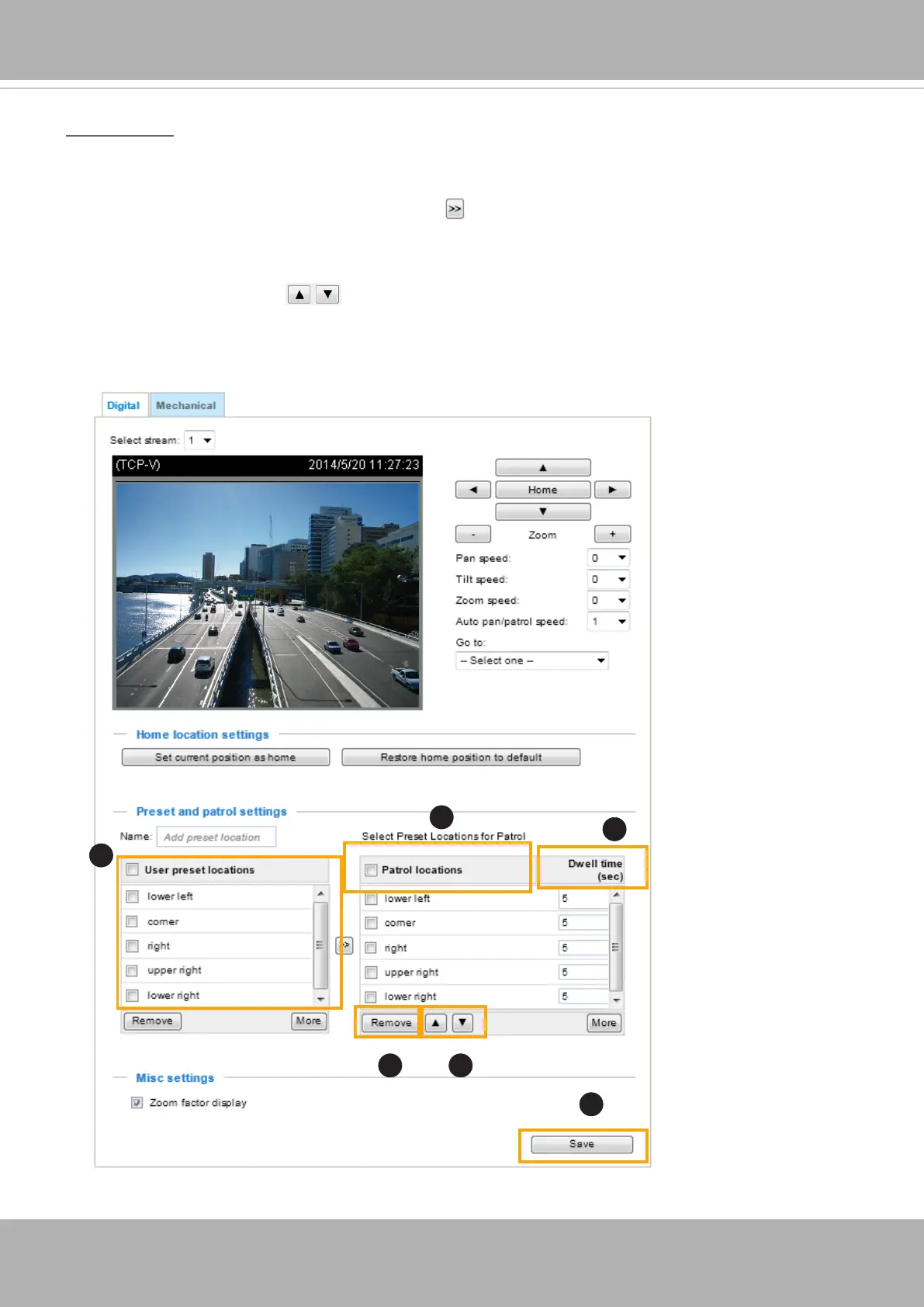3. Set the Dwelling time for the preset location during an auto patrol.