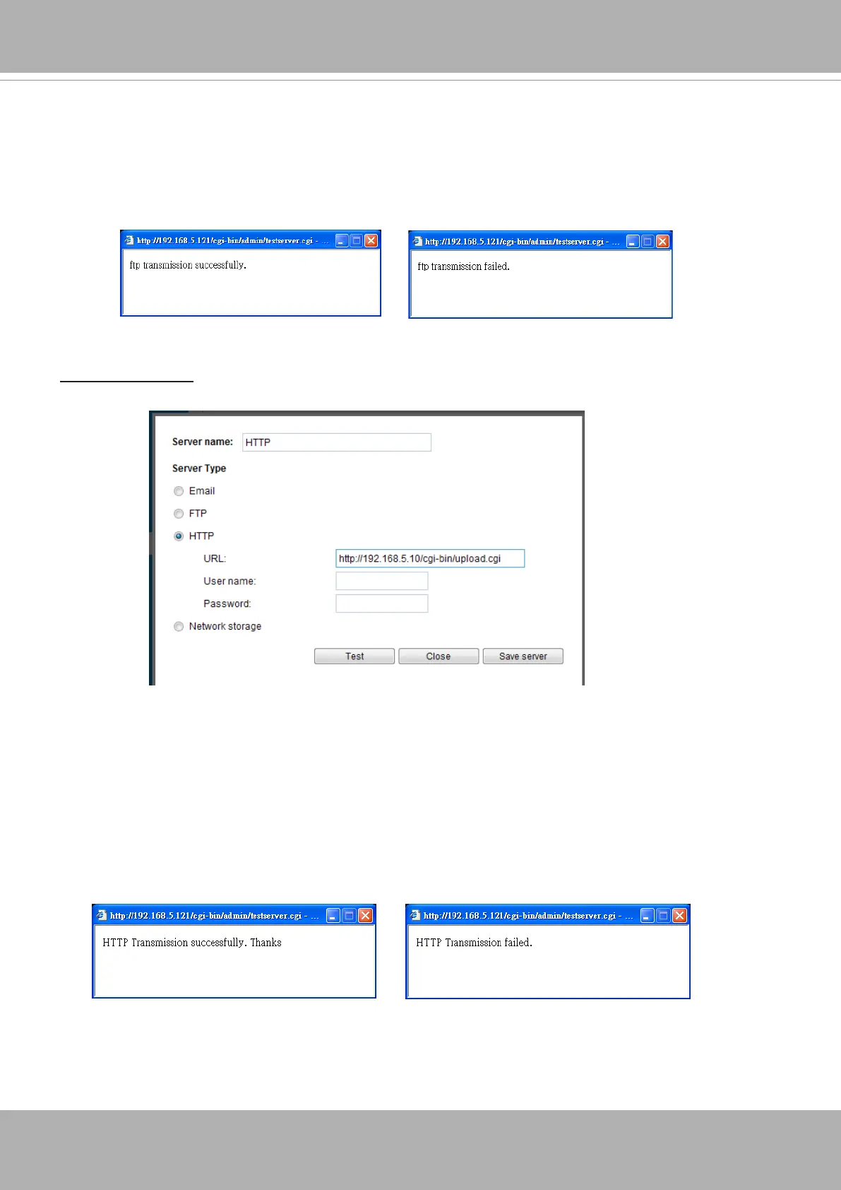 To verify if the FTP settings are correctly congured, click Test. The result will be shown in a pop-up