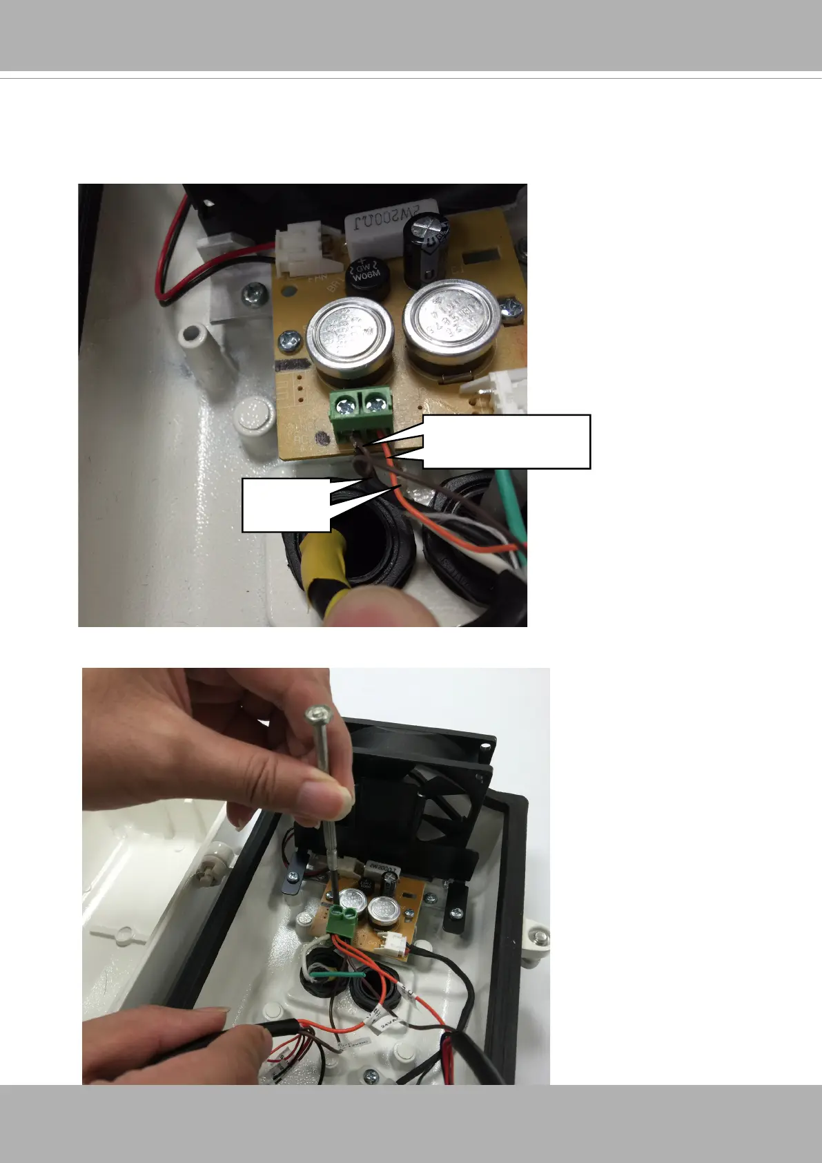 13. Attach the AC24V power wires and power inputs from the IR light units to the terminal