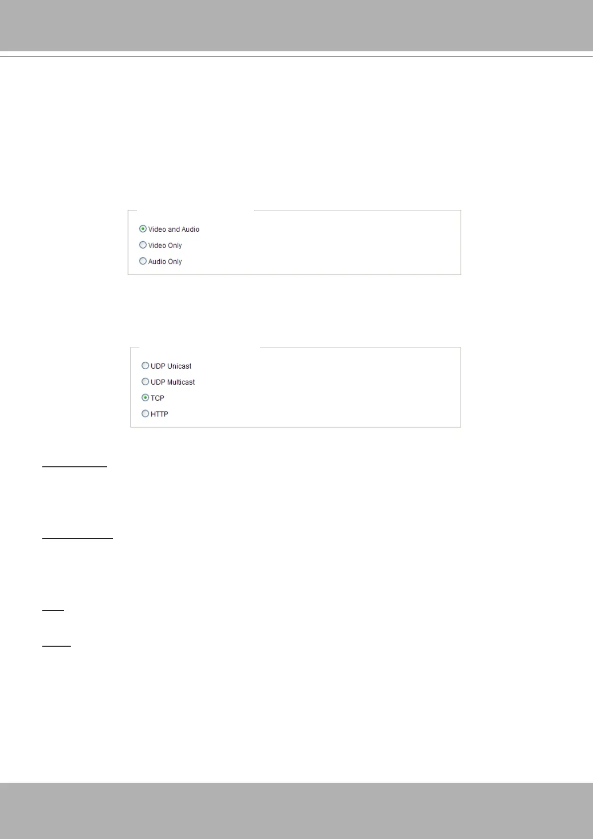 Select to stream video or audio data or both. This is enabled only when the video mode is set to H.264.