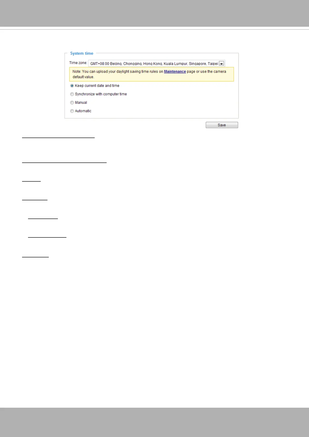 Manual: The administrator can enter the date and time manually. Note that the date and time format are