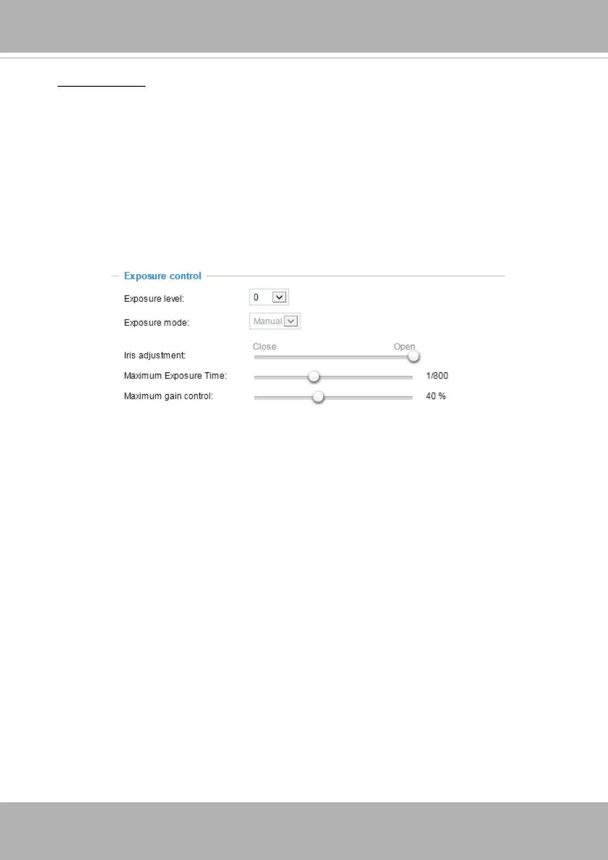 Manual: Select Manual to set a xed exposure time and gain. Then, tune the slide bar to set the