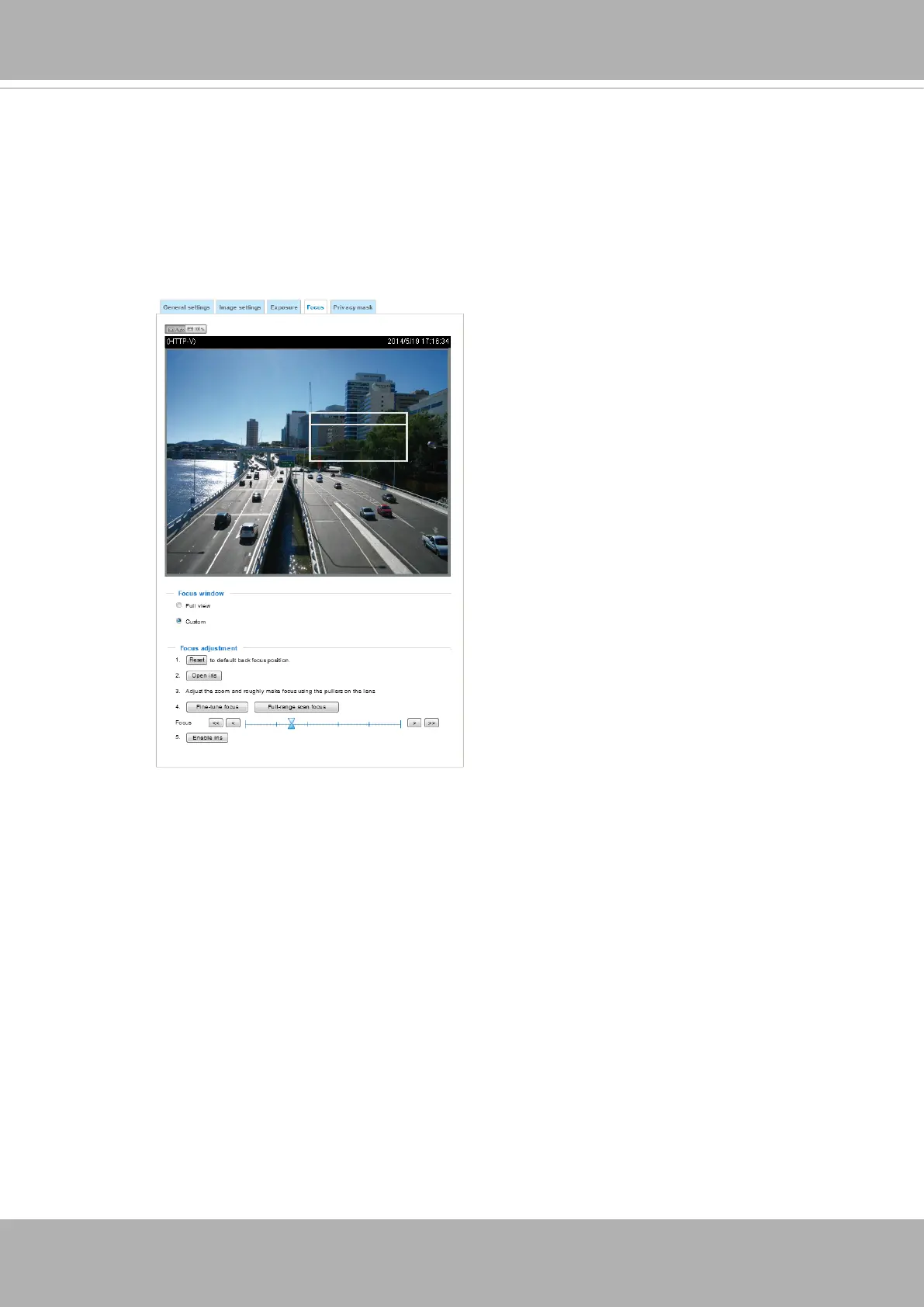 Focus here refers to the Remote Back Focus, is applicable to Network Cameras that are