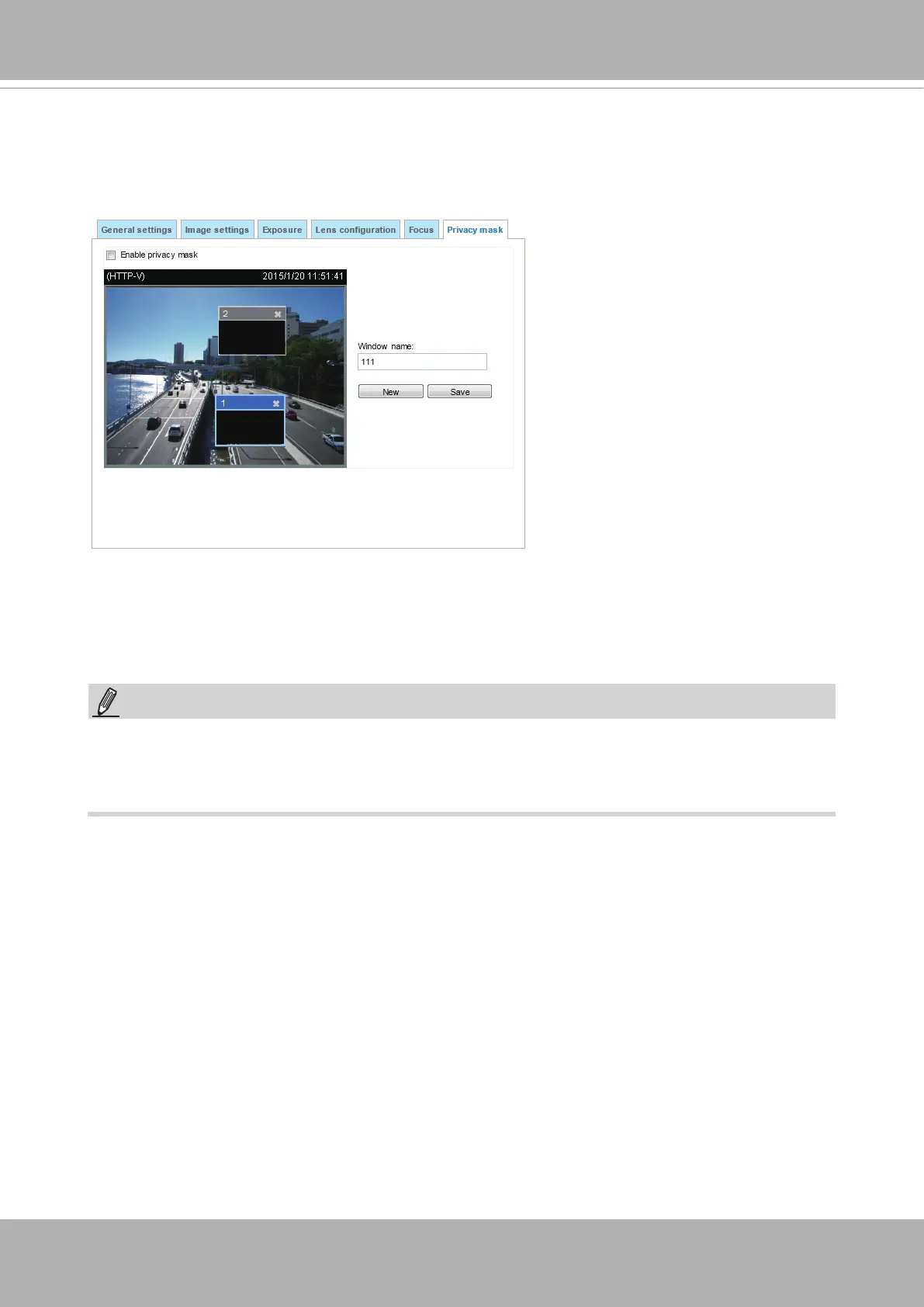Up to 5 privacy mask windows can be set up on the same screen.