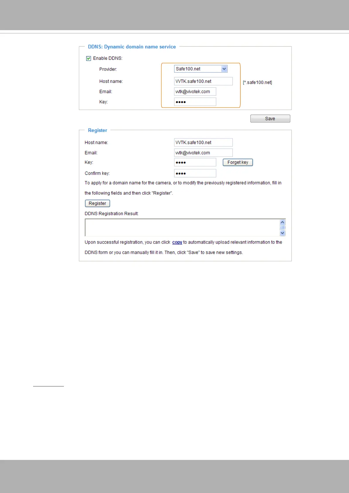 2. In the Register column, ll in the Host name, Email, Key, and Conrm Key; then click Register.
