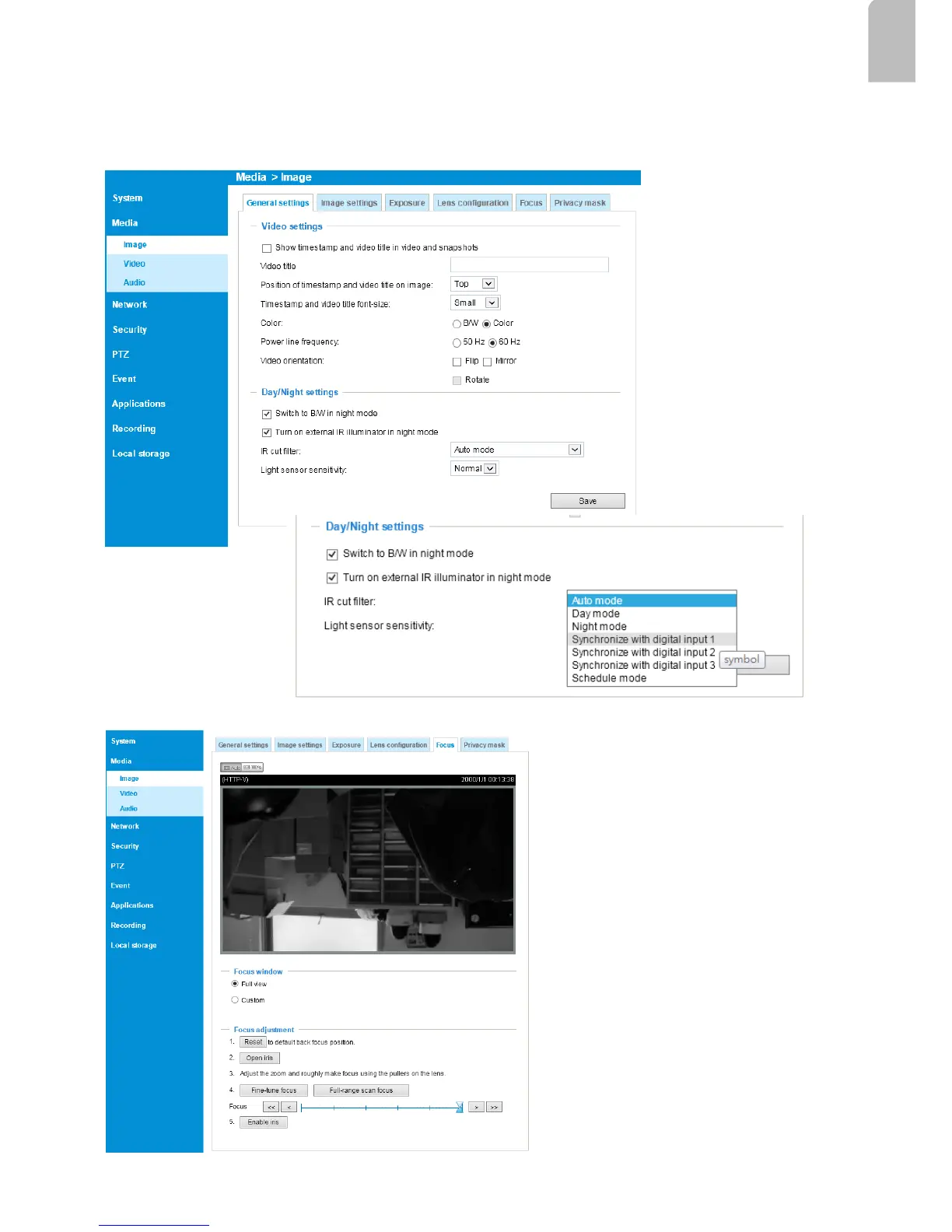 mode, and that the IR cut lter option is synchronized with the digital input you connected
