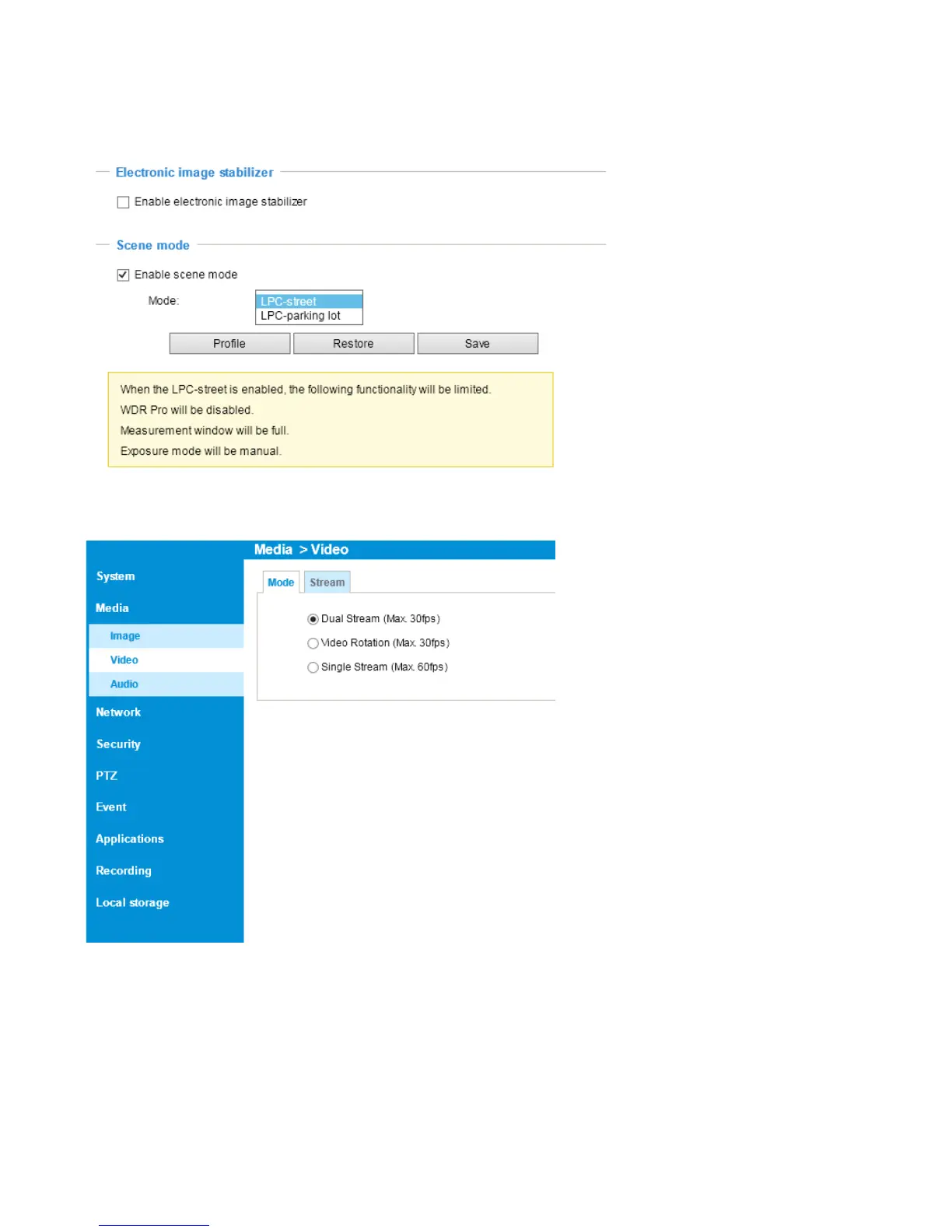 In the Conguration > Media > Image settings page, select an application scenario, LPC