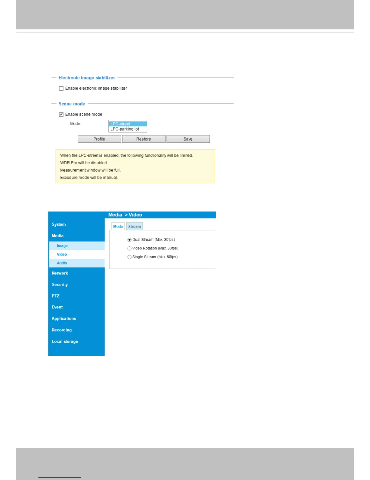 In the Conguration > Media > Image settings page, select an application scenario, LPC