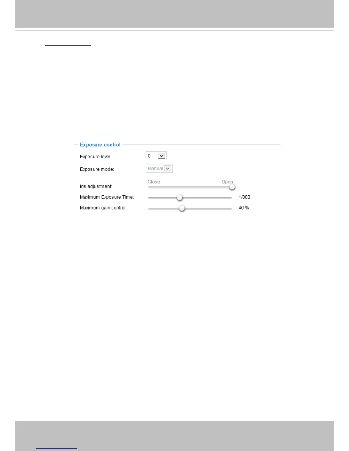 Manual: Select Manual to set a xed exposure time and gain. Then, tune the slide bar to set the