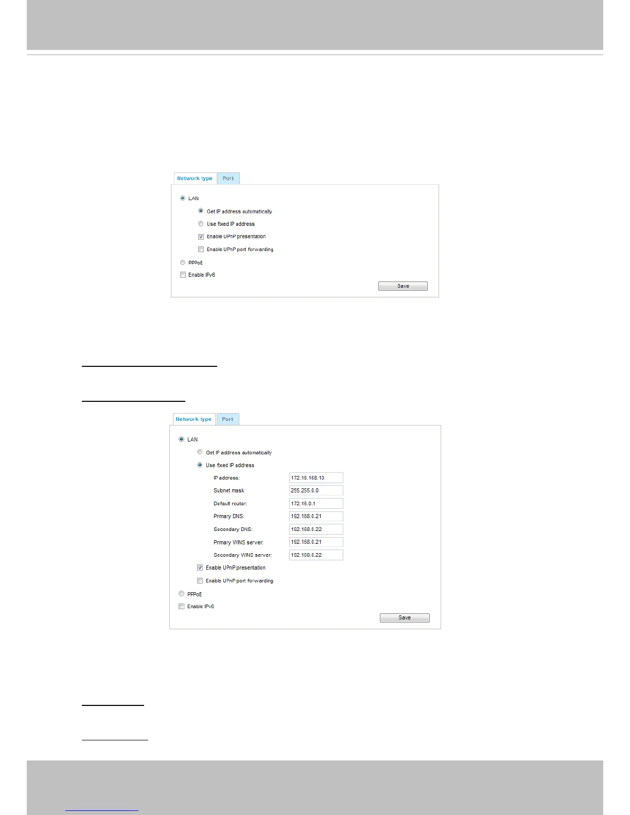 Use fixed IP address: Select this option to manually assign a static IP address to the Network