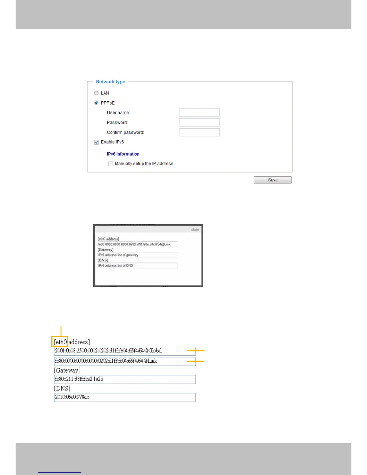 IPv6 Information: Click this button to obtain the IPv6 information as shown below.
