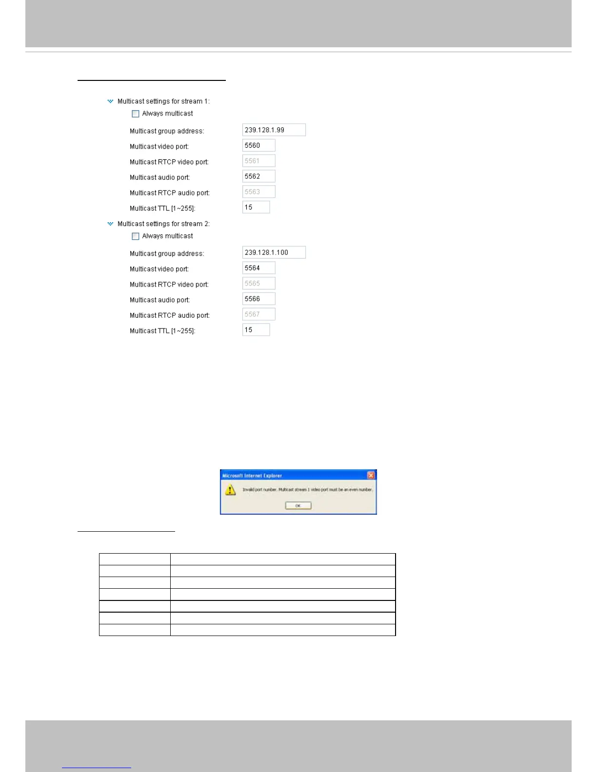 If the multicast RTP video ports are incorrectly assigned, the following warning message will be