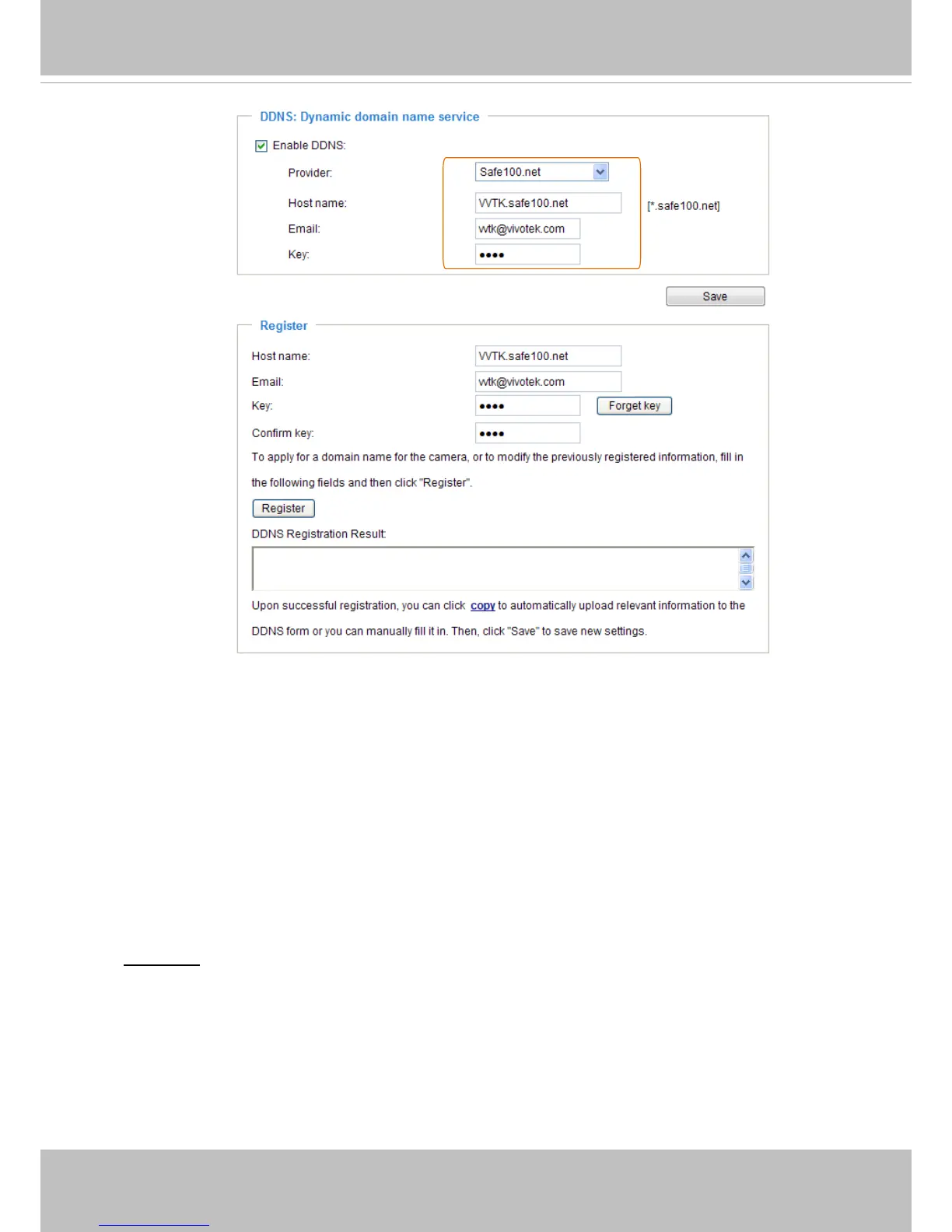 2. In the Register column, ll in the Host name, Email, Key, and Conrm Key; then click Register.
