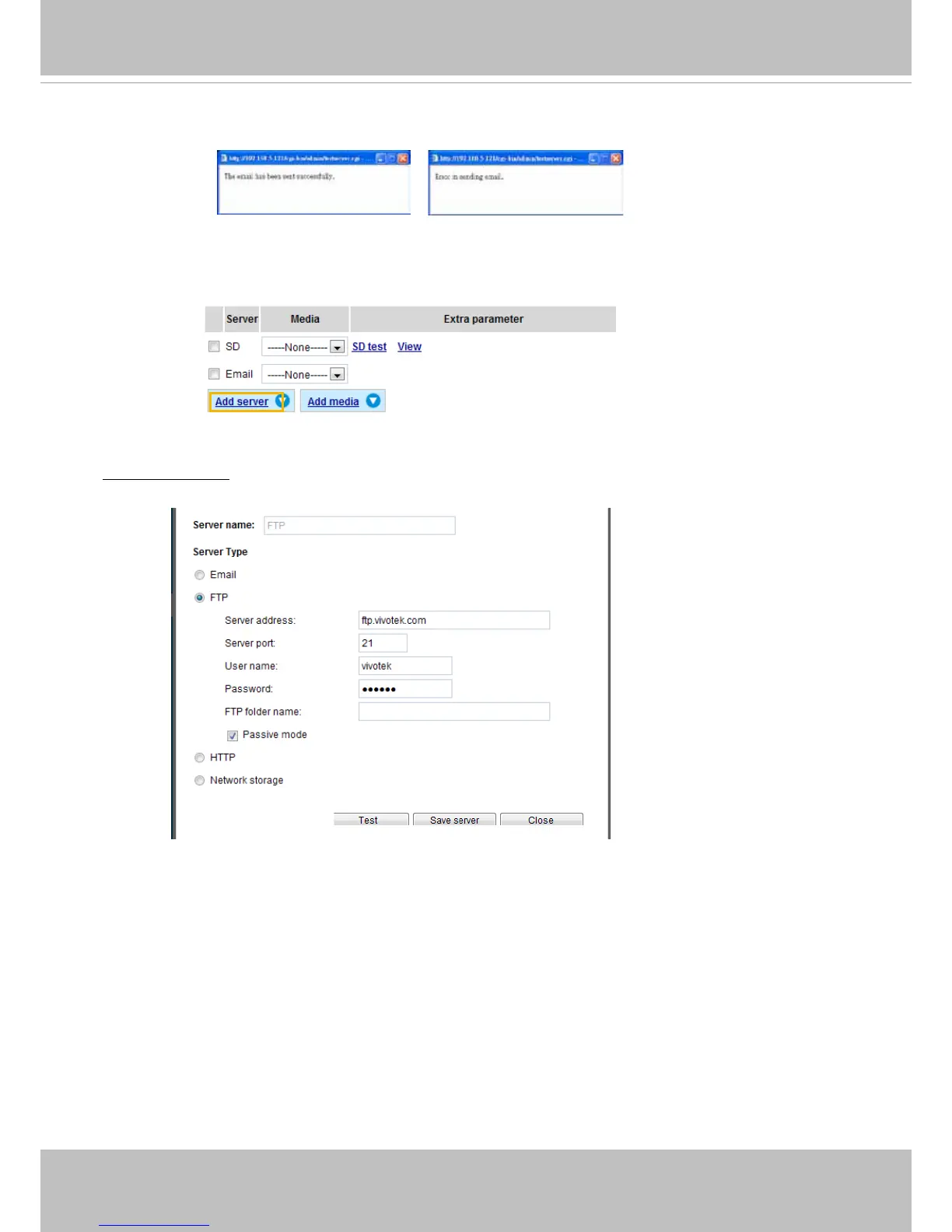 To verify if the email settings are correctly congured, click Test� The result will be shown in a pop-up