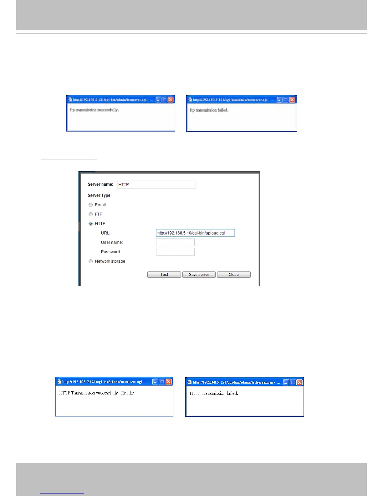 To verify if the HTTP settings are correctly congured, click Test� The result will be shown in a pop-up