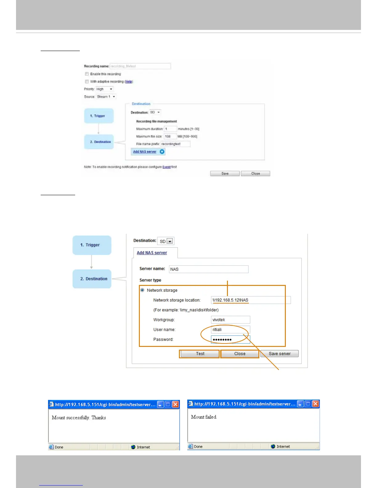 If you have not congured a NAS server, click Add NAS server to open the server setting window and