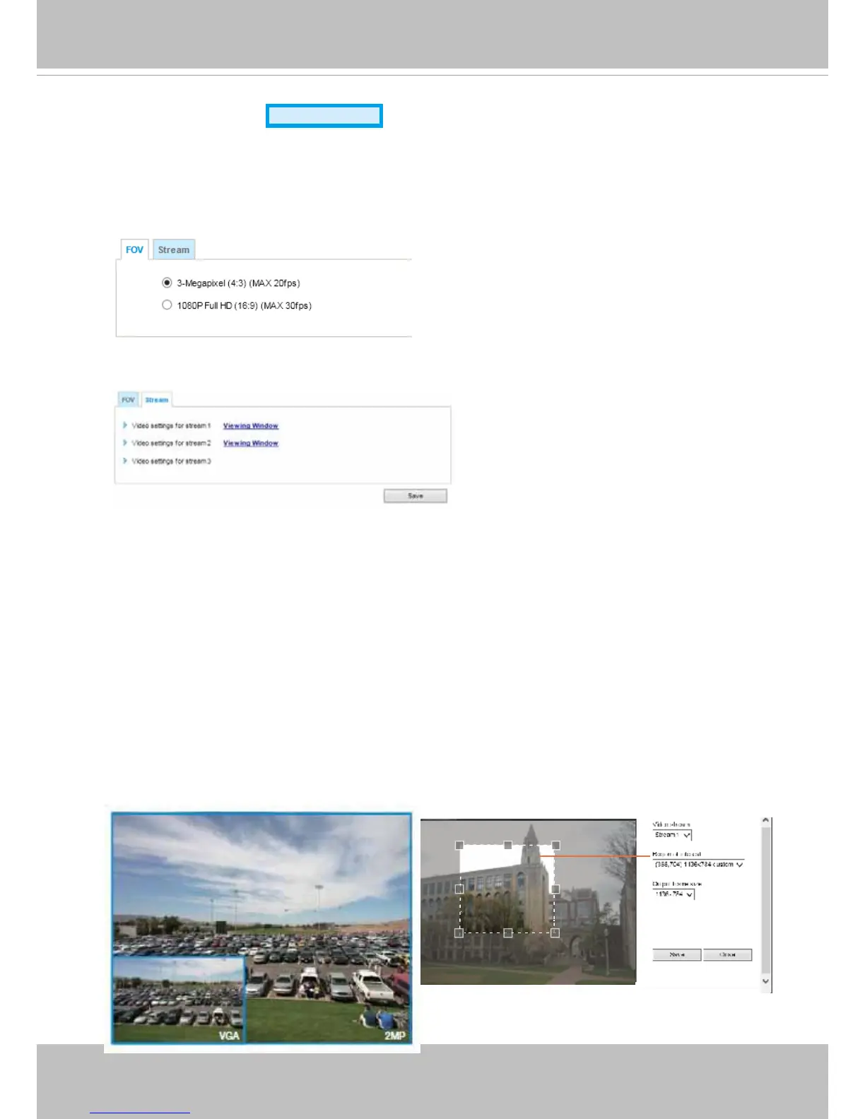 ■ Stream 1 & 2: Users can dene the "Region of Interest" (viewing region) and the "Output Frame