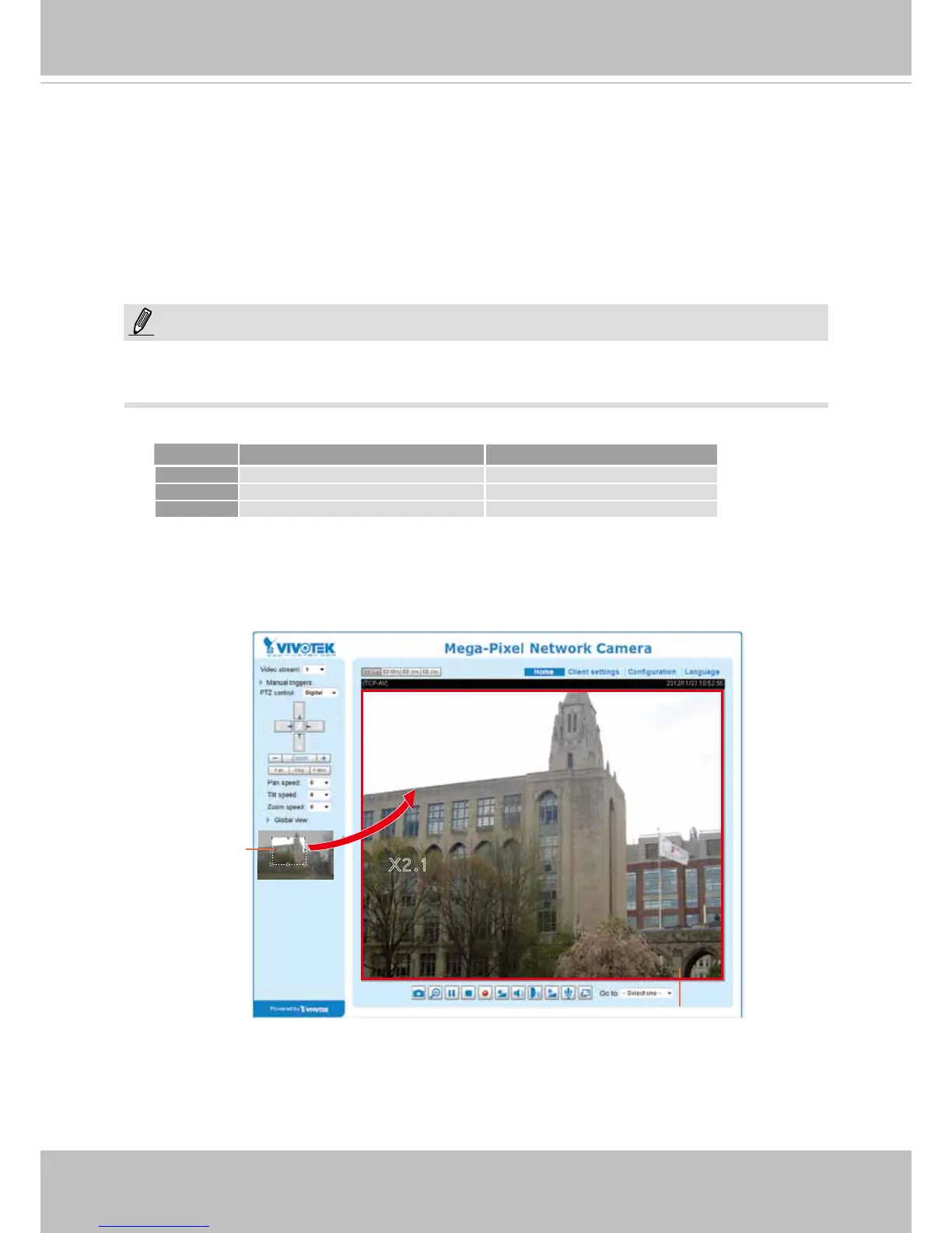the Frame size of each video stream� Then you can go back to the home page to test the e-PTZ
