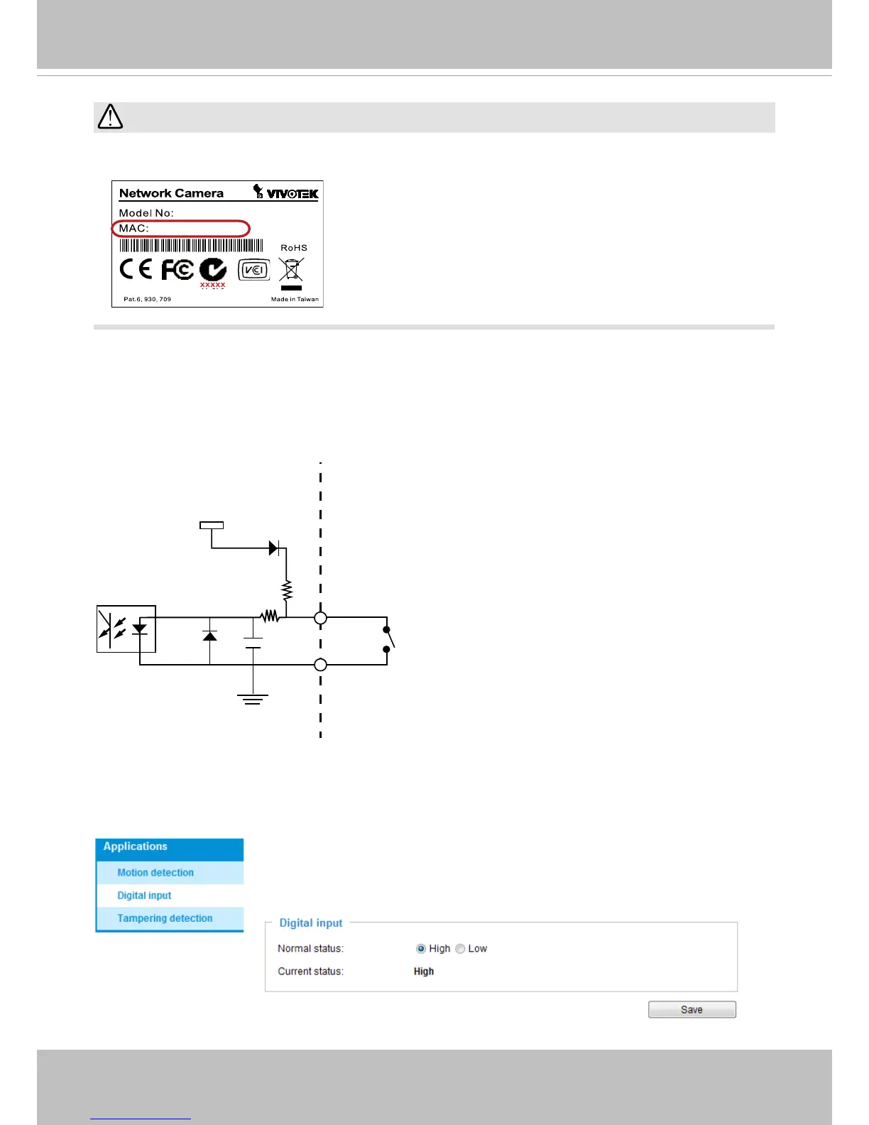Input page, you can let camera report the current signal status as High or Low, Open or Ground-