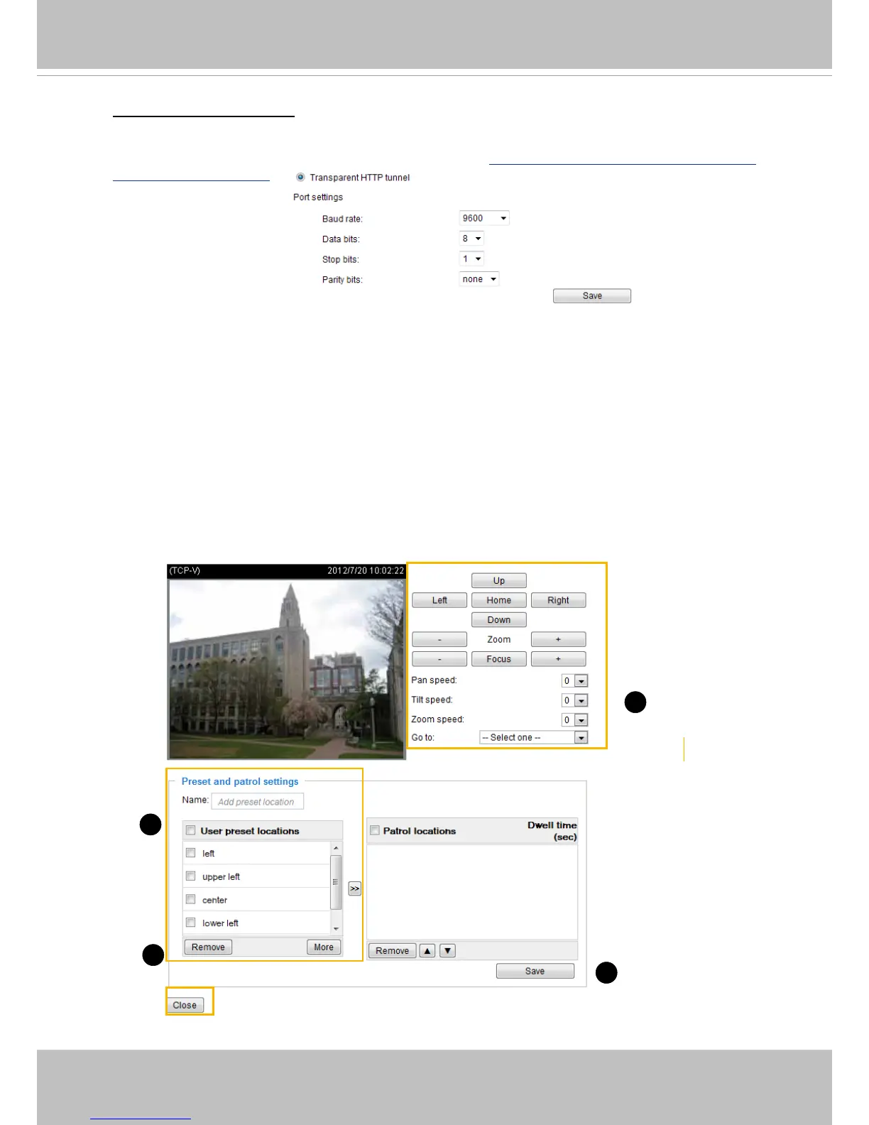 If you select Pelco D protocol, as the PTZ driver and click the Save button, the Preset Position