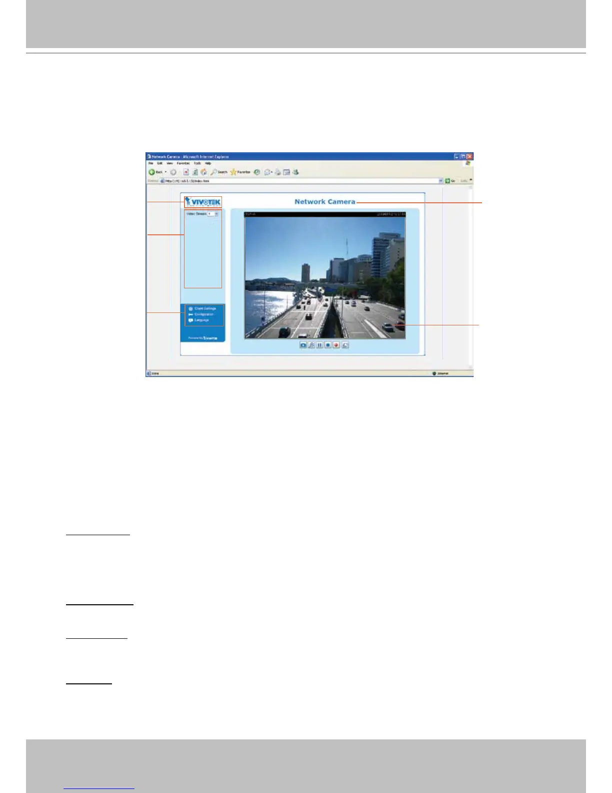 Conguration: Click this button to access the conguration page of the Network Camera. It is suggested