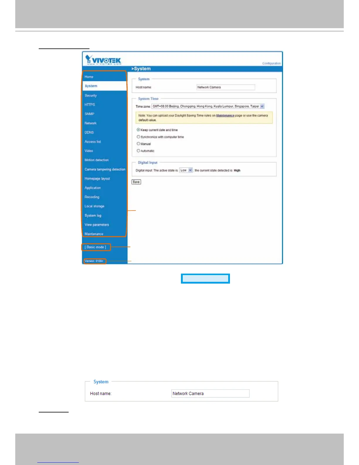 This section explains how to congure the basic settings for the Network Camera, such as the