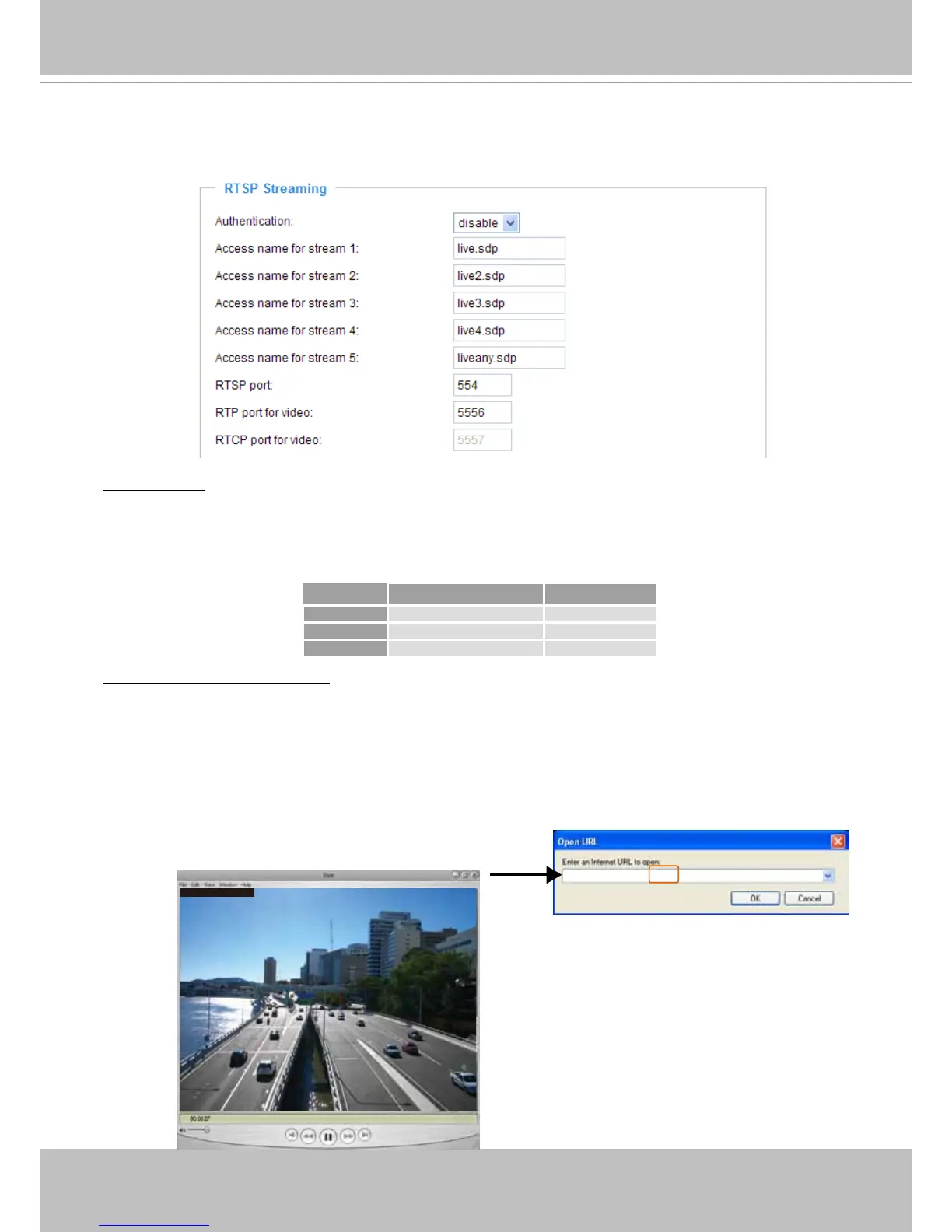 rtsp://<ip address>:<rtsp port>/<access name for stream1 ~ 5>
