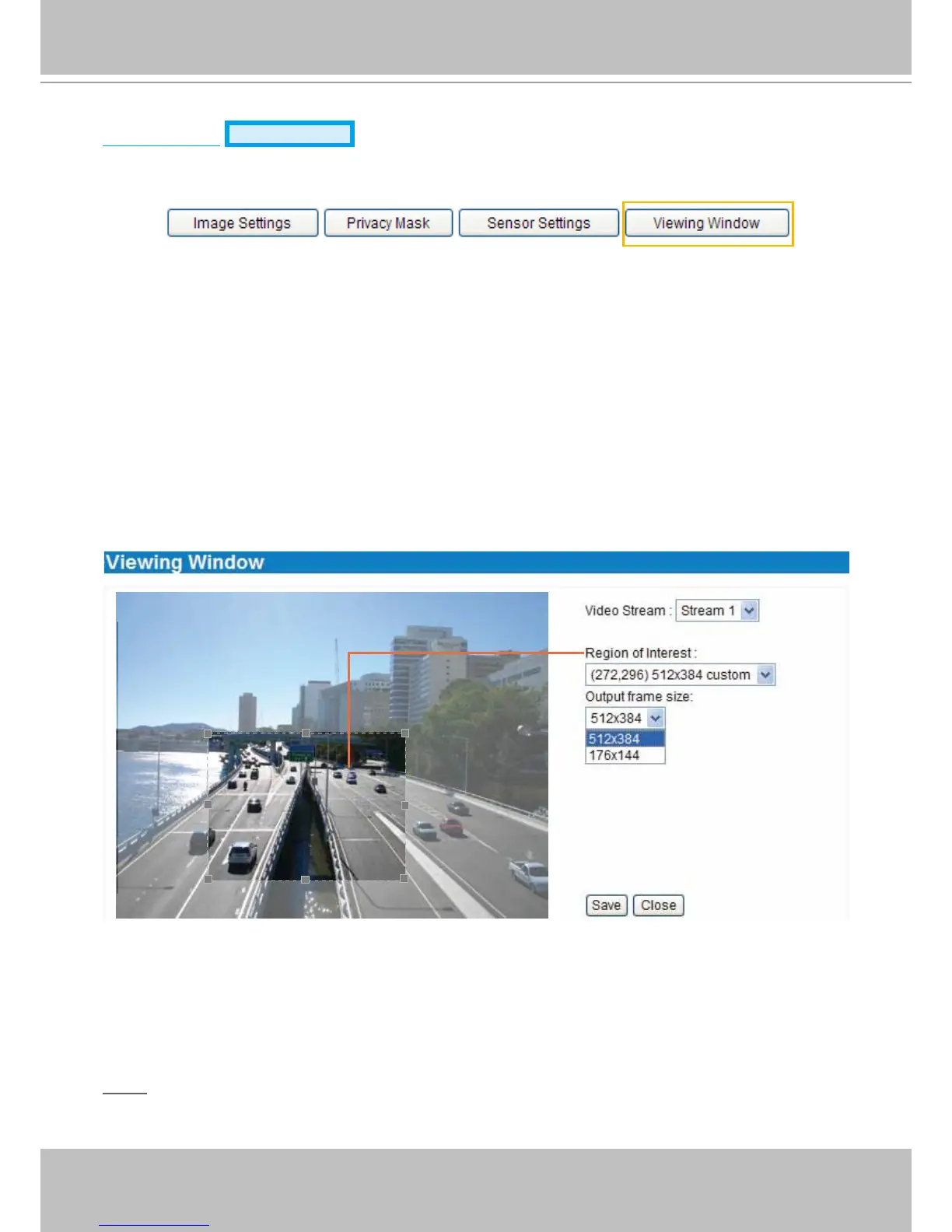 ■ Stream 2: Users can dene the "Region of Interest" (viewing region) and the "Output Frame Rate" (size