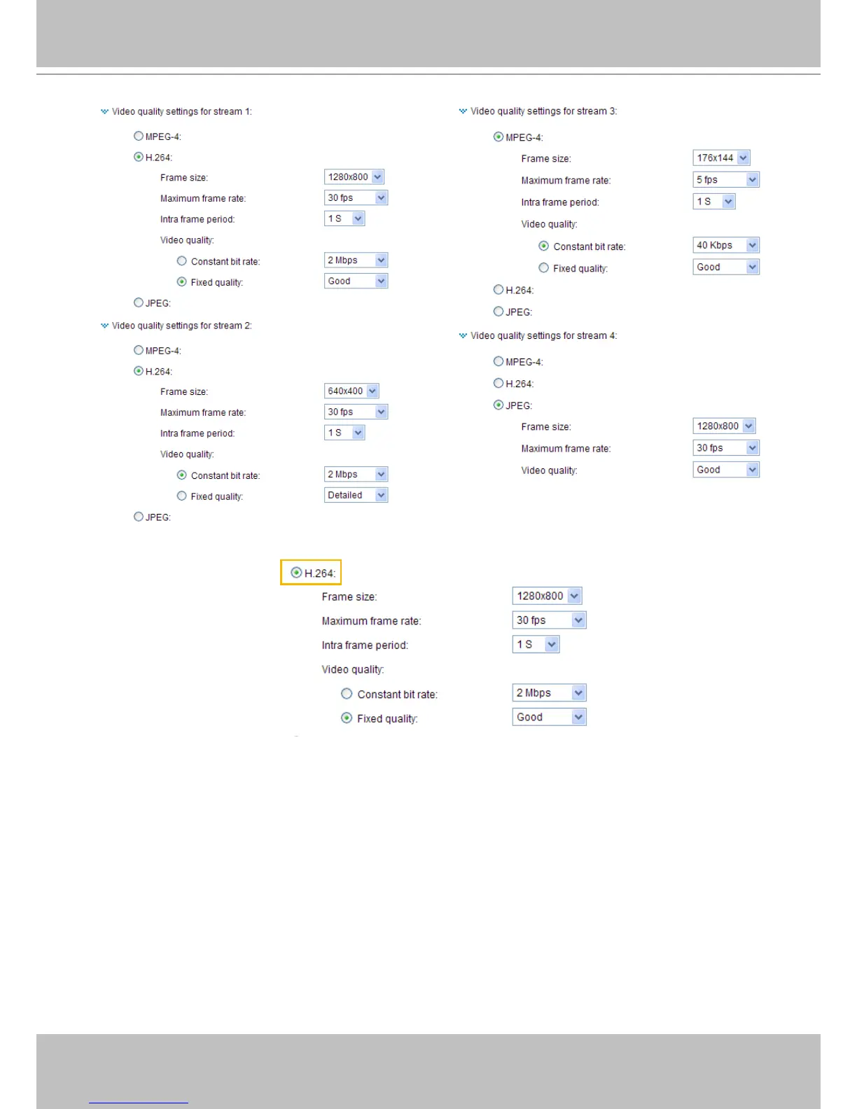 If H.264 / MPEG-4 mode is selected, the video is streamed via RTSP protocol. There are four parameters