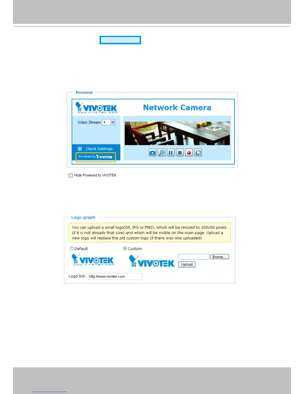 ■ Hide Powered by VIVOTEK: If you check this item, it will be removed from the homepage.