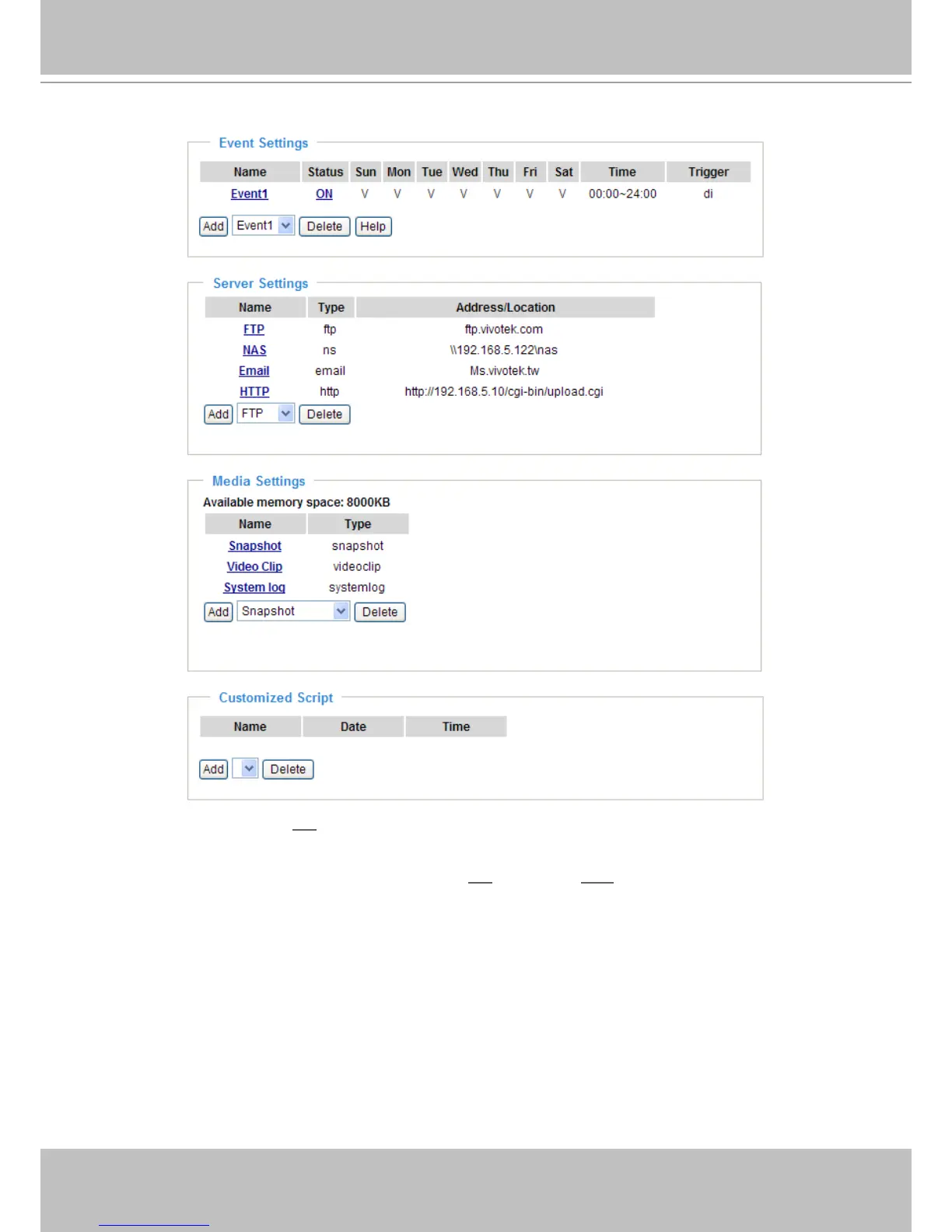 Note that only when the media setting is not being applied to an event setting can it be deleted.