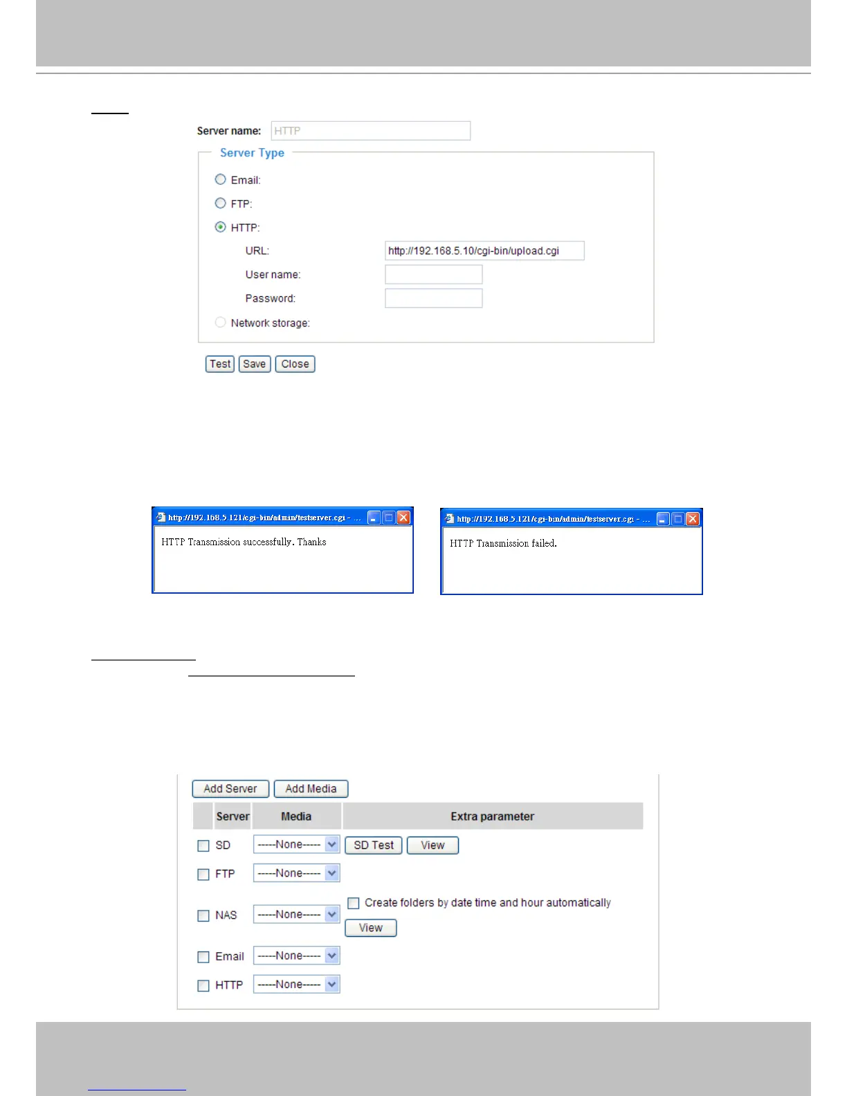 HTTP: Select to send the media les to an HTTP server when a trigger is activated.