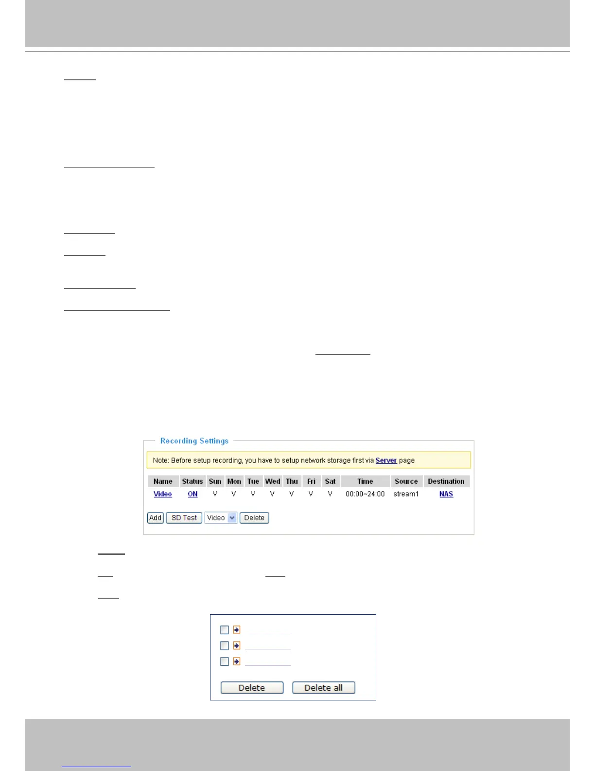 ■ Schedule: The server will start to record les on the local storage or network storage (NAS).