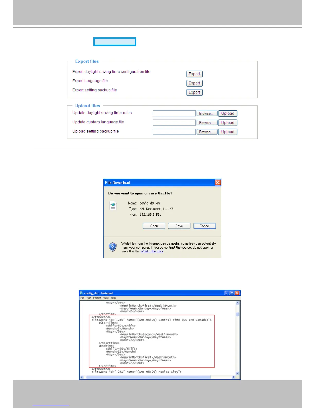 Export daylight saving time conguration le: Click to set the start and end time of DST.