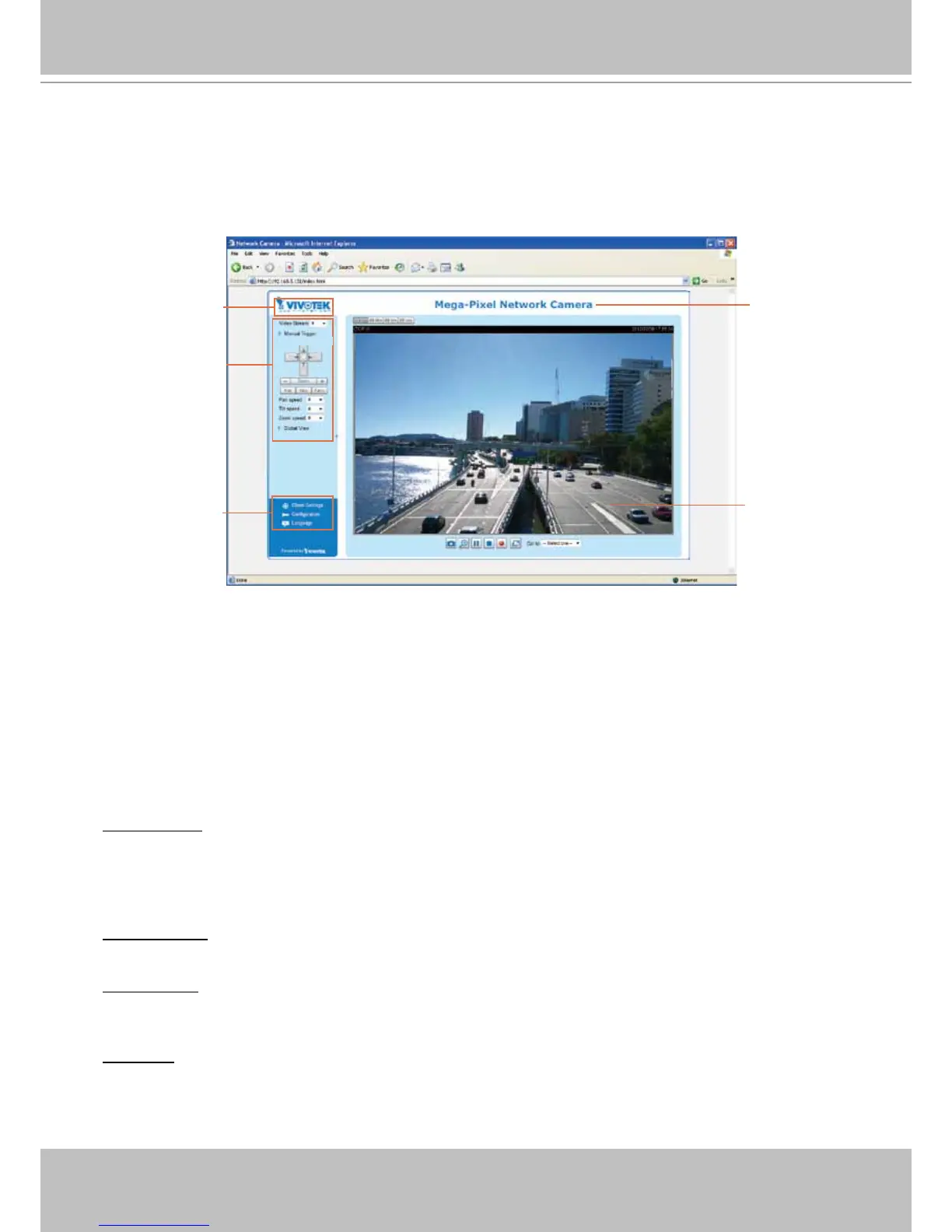 Conguration: Click this button to access the conguration page of the Network Camera. It is suggested