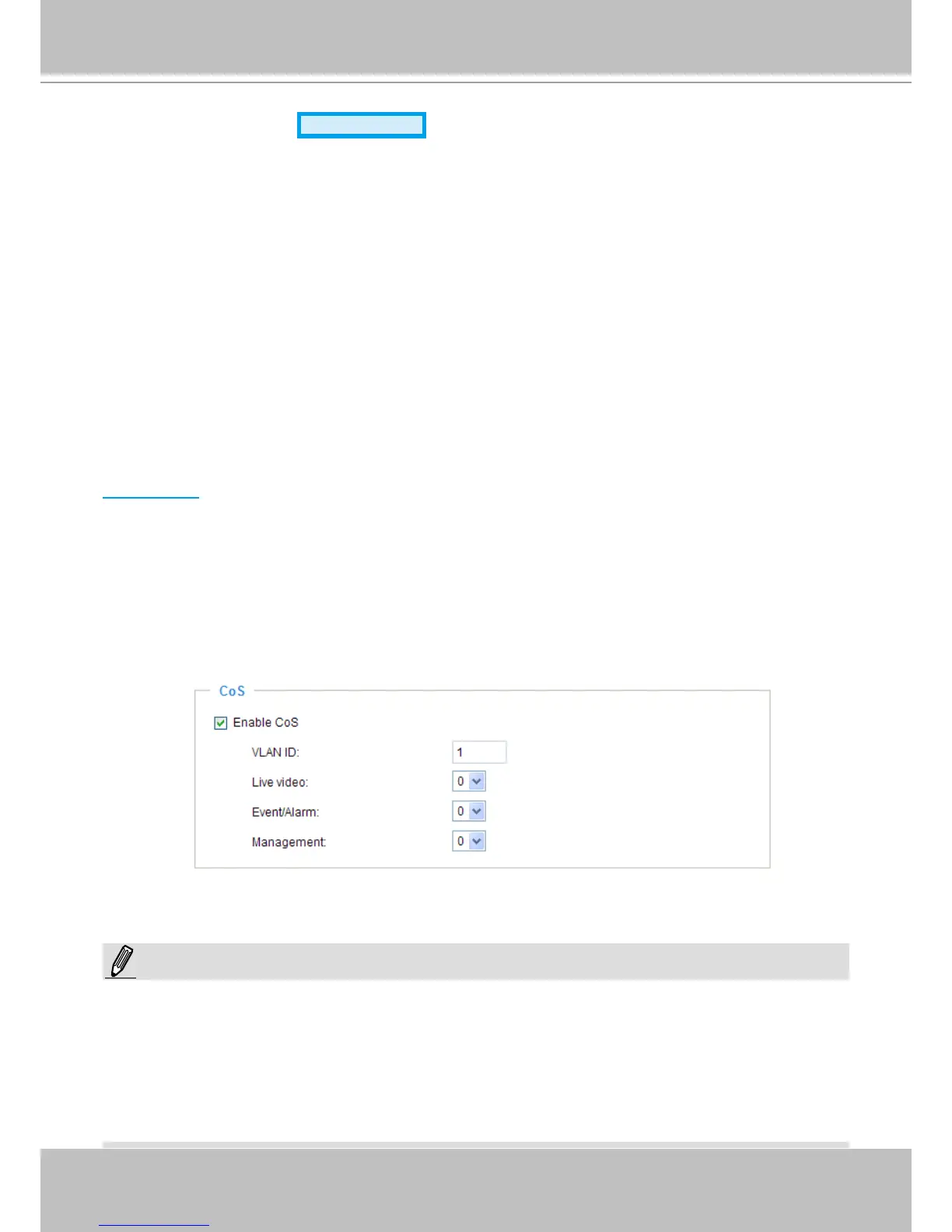 Below is the setting column for CoS. Enter the VLAN ID of your switch (0~4095) and choose the priority