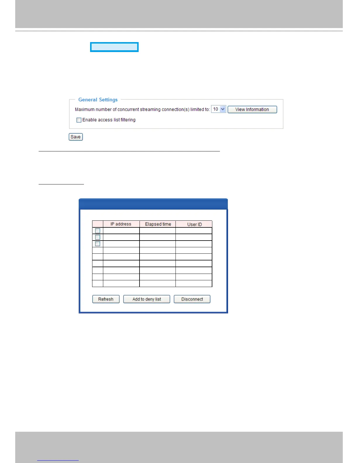 and password to access the live video. The user name will be displayed in the User ID column. If the