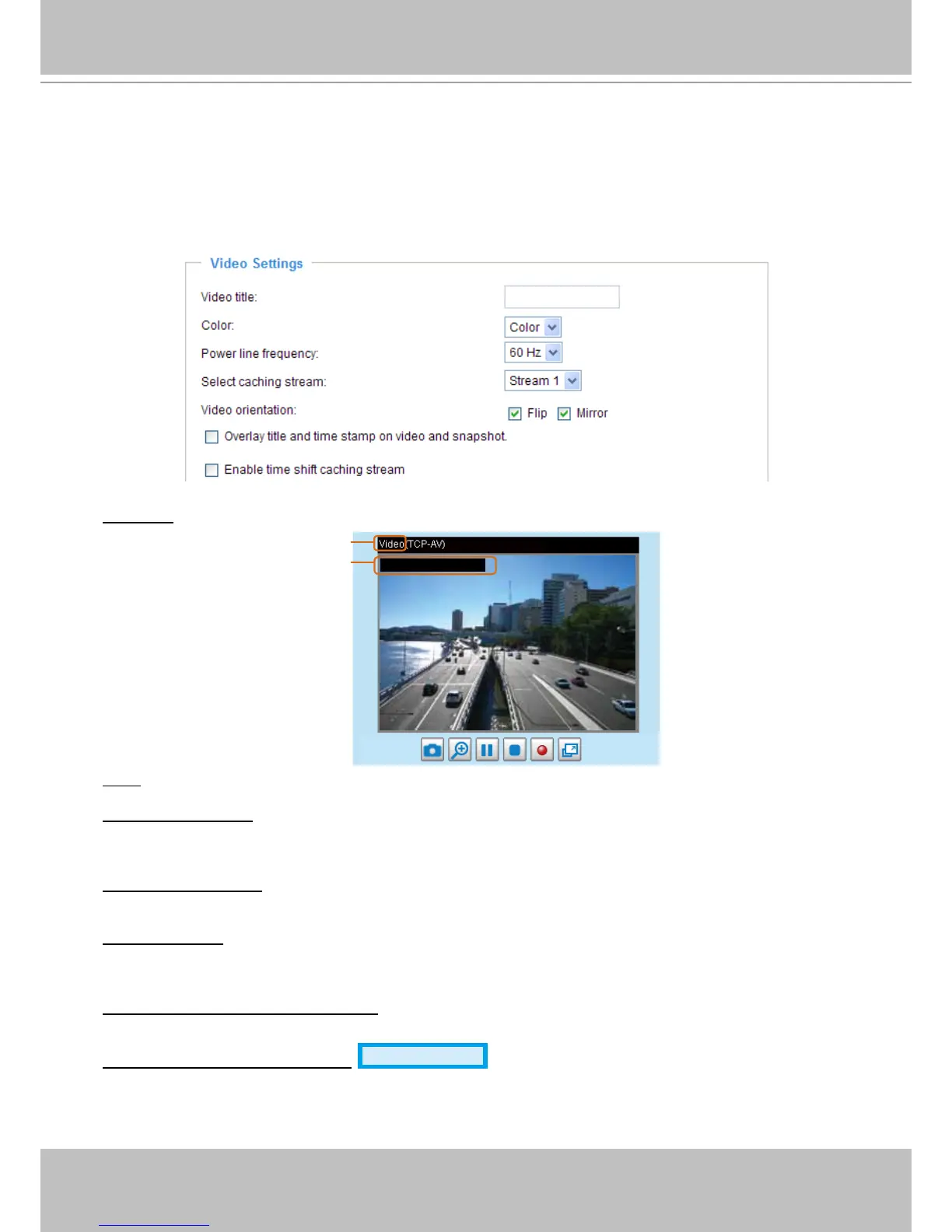 Video orientation: Flip--vertically reect the display of the live video; Mirror--horizontally reect the display