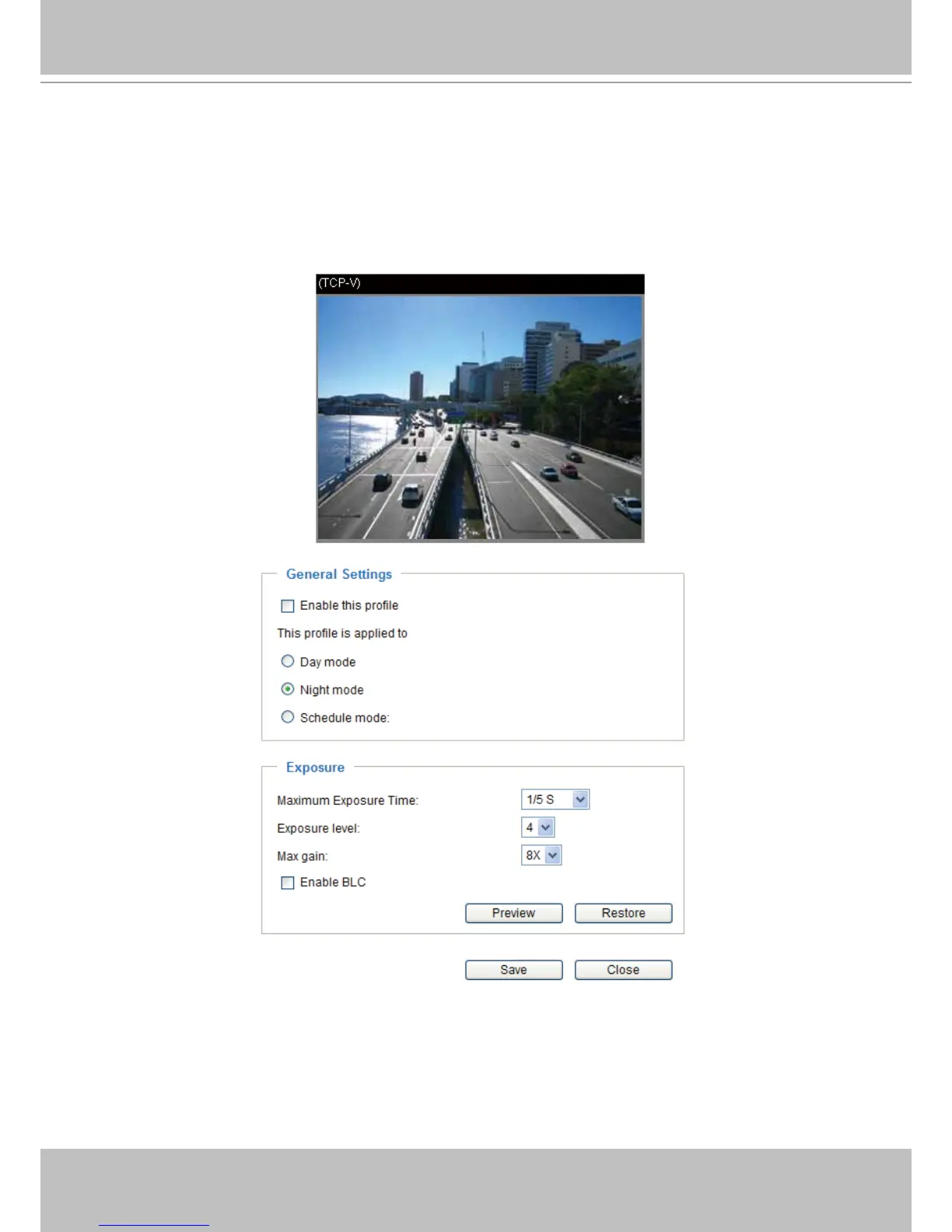 If you want to congure another sensor setting for day/night/schedule mode, please click Prole to open