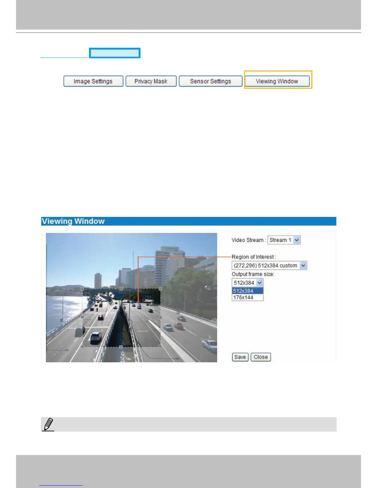 ■ Stream 1: Users can dene the "Region of Interest" (viewing region) and the "Output Frame Rate" (size