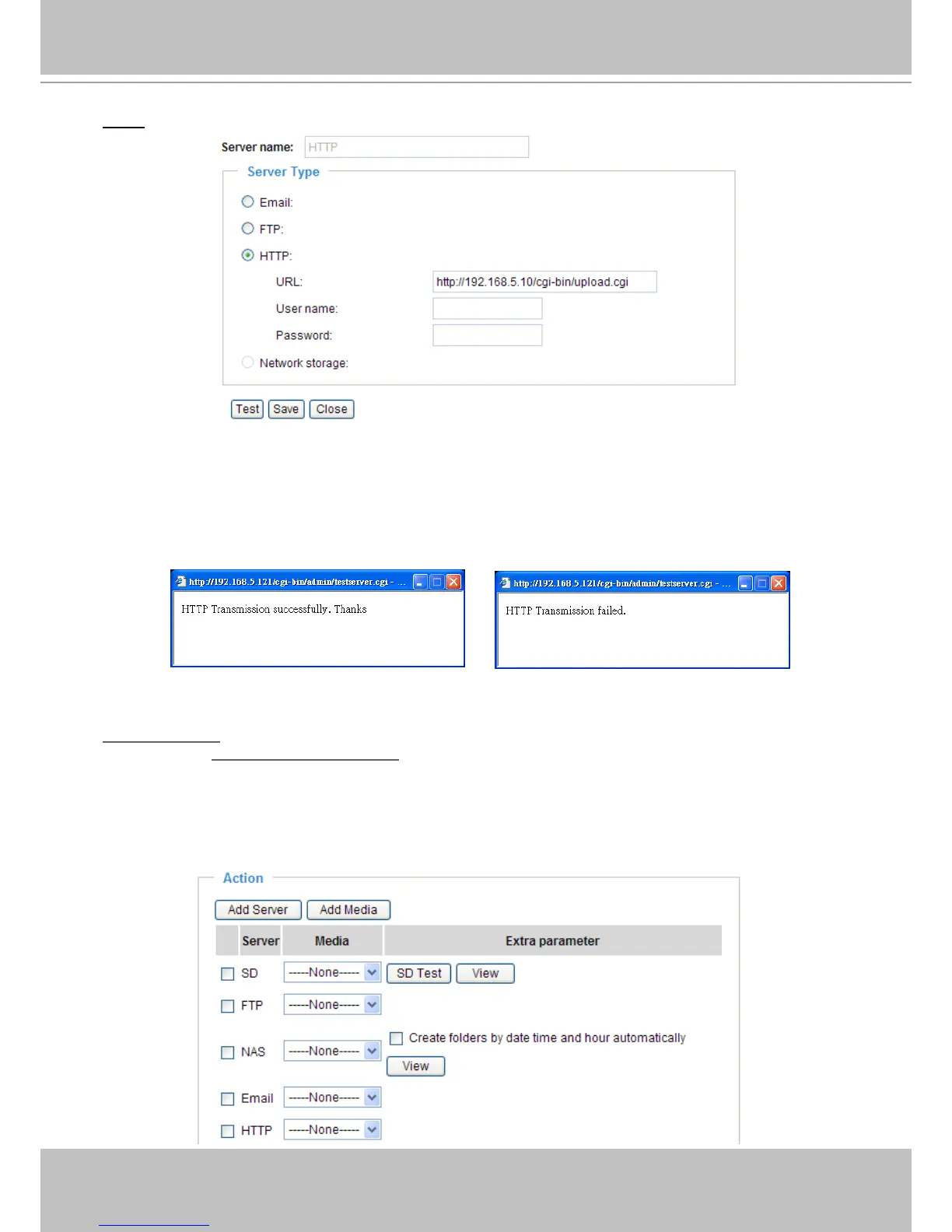 HTTP: Select to send the media les to an HTTP server when a trigger is activated.