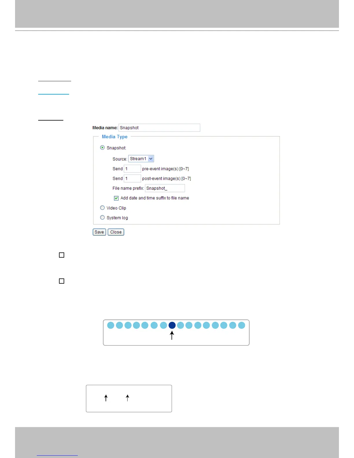 There are three choices of media types available: Snapshot, Video Clip, and System log.
