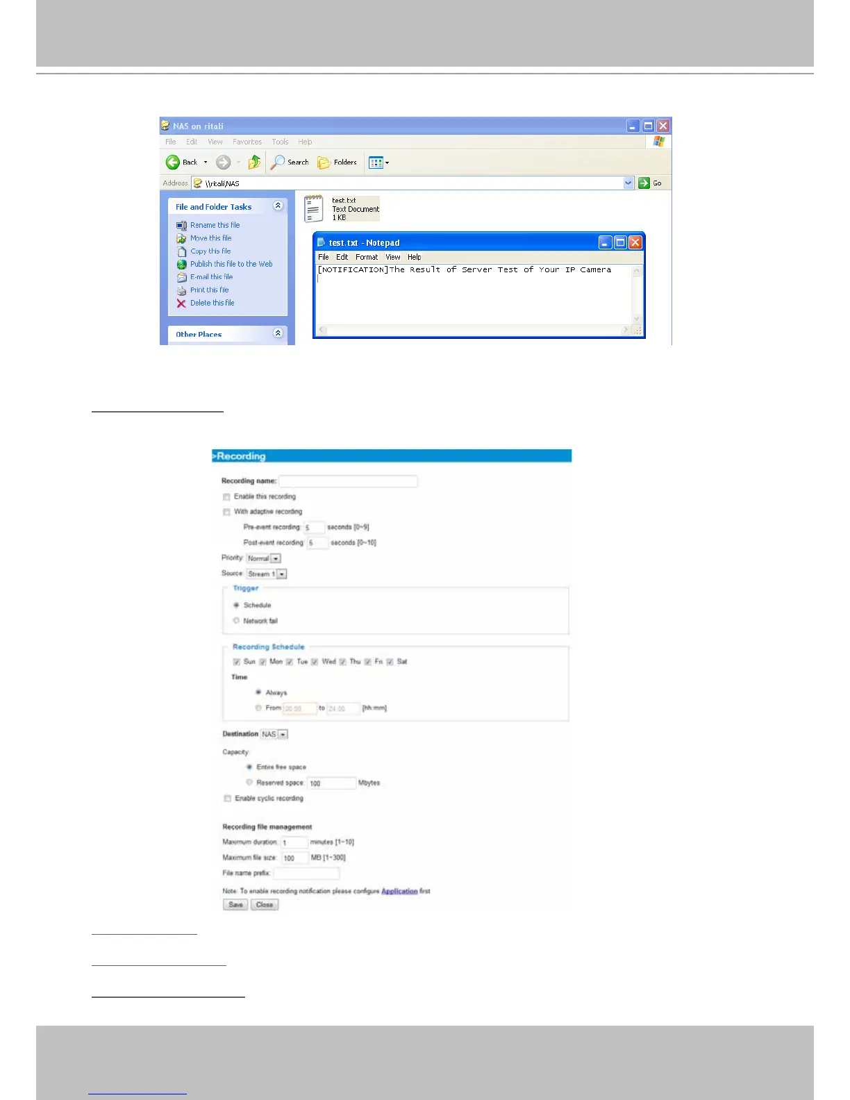 recording schedule, and recording capacity. A total of 2 recording settings can be congured.